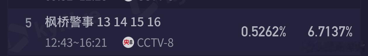 电视剧逍遥午间档大家看好收视率吗?为了有数据对比,我查了一下最近七天同时期央八的酷云收视(四集连播)12月15日《沉默的荣耀》0.5552,12月17日《沉默的荣耀》0.601512月19日《枫桥警事》 0.462912月21日《枫桥警事》 0.5262《逍遥》大家压多少?