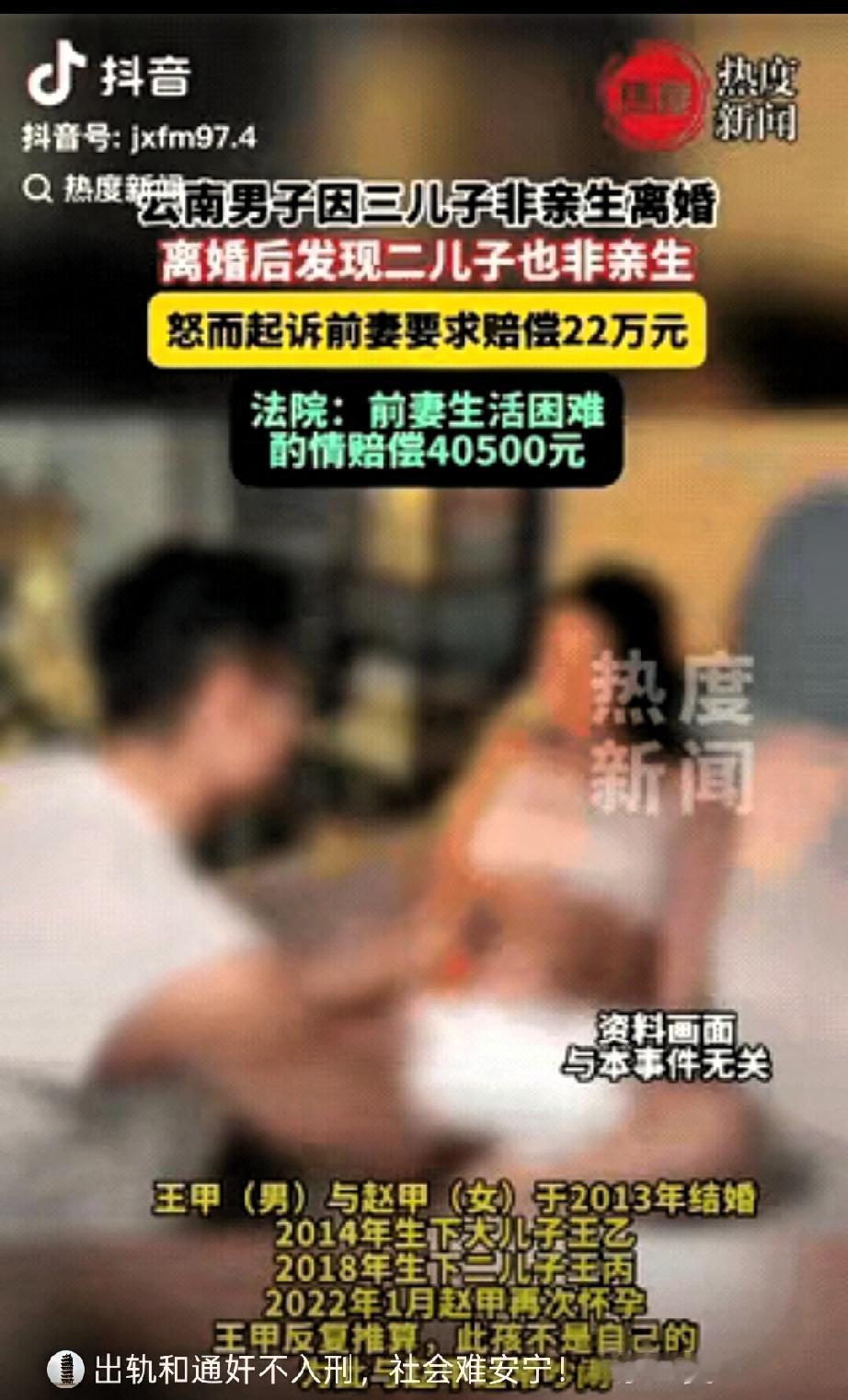 云南昆明,妻子怀上第3胎,男子一算日子不对劲,两人争吵后协议离婚 昆明的王某与前妻赵某在2014年同居,同年生下大儿子,2017年补办结婚证,2018年二儿子出生,一家四口的日子看似平淡安稳。为了撑起这个家,王某每天加班加点挣钱,从不敢有丝毫懈怠。 转折发生在2022年,赵某第三次怀孕,王某仔细核算同房日期后,发现时间对不上,两人为此多次争吵,感情彻底破裂,同年12月协议离婚。 离婚协议约定大儿子归王某抚养,二儿子归赵某抚养,双方互不支付抚养费,财产各自分配,当时并未提及亲子鉴定一事。 离婚后的三年里,街坊邻居偶尔打趣二儿子长得不像王某,这话像针一样扎在他心上。2025年11月,王某带着两个儿子去做亲子鉴定,结果显示大儿子是亲生,二儿子却与他没有血缘关系,这个结果让他难以接受。 想到自己多年来为二儿子支付学费、添置衣物,尽心尽力抚养,王某越想越气愤,随即起诉前妻,要求返还欺诈性抚养费并赔偿精神损失,合计22万余元。 法院审理后认为,赵某在婚姻关系存续期间隐瞒二儿子非王某亲生的事实,违背了夫妻忠实义务,给王某造成了精神痛苦。 最终判决赵某返还抚养费2.55万元,支付精神损害抚慰金1.5万元,合计4.05万元,其余诉求因证据不足被驳回,原财产分割协议保持不变。 这件事警醒着每一对夫妻,忠诚是婚姻的基石,任何隐瞒和欺骗,最终都会给彼此带来难以磨灭的伤害。离婚时面对存疑的问题,也应及时通过合法途径核实,避免日后滋生更多纠纷。