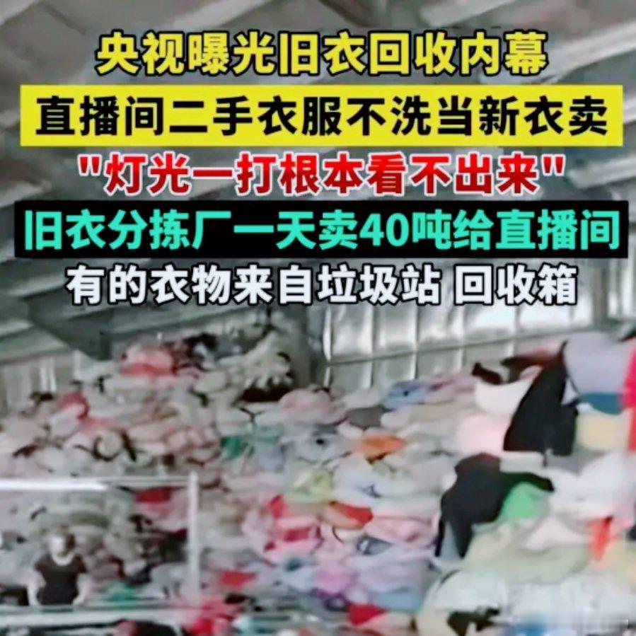 天塌了!央视实锤曝光!央视曝光旧衣回收产业你蹲直播间抢的“孤品大牌尾货”,根本不是什么捡漏福利!有可能,很有可能丨全是垃圾回收站分拣出来的二手旧衣!美颜灯下光鲜亮丽,收到手刺鼻难闻,主播还能扯一堆借口忽悠你!别再为“捡漏”冲动下单,小心花钱买了别人的旧衣服!