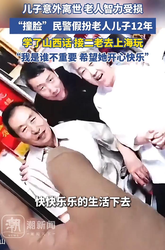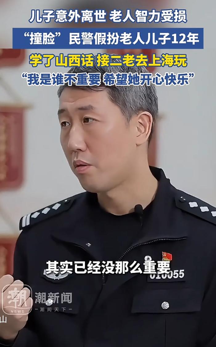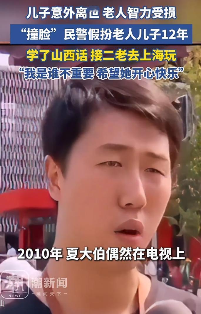 这是我见过最有爱最感人最值得宣传的“诈骗”! 上海一民警假扮山西一对夫妻的儿子已经12年了,他将继续假扮下去。 2003年,山西夏大伯的儿子梁女士 因为煤气中毒,智力受损,只有五六岁的智力,大儿子也不幸身亡。 梁女士醒来后,总是念叨去世儿子小宇的名字,这让夏大伯内心很心碎。 有一天,夏大伯在电视上看到了民警姜经纬,发现他长得和去世的儿子小宇很像,于是他找到了姜经纬,希望他能扮演自己的儿子,哄哄老伴。 姜经纬和父母说了这个事,他的父母也是有大爱的人,同意了。 就这样,姜经纬生了夏大伯和梁女士的儿子,因为梁女士智力只有五六岁,所以她就将姜经纬当成了自己的儿子,看到儿子,她特别开心。 这好事一做就是12年,姜经纬还学会了山西话,还接老两口去上海玩。 姜经纬说,事情到了这个地步,自己是不是姜经纬已经不重要了,只是希望老人能这样一直下去,一直幸福下去。开开心心,快快乐乐的。 说真的,做一分钟好事容易,做12年,不容易啊,而且他会一直做下去,很多人给父母打个电话都不愿意,更别谈对陌生人这么好了。 姜经纬真的是一个有爱的人,他不愧为人民警察。当然,他的善良不是因为他是警察而是他的本性就是善良,平凡而又伟大。