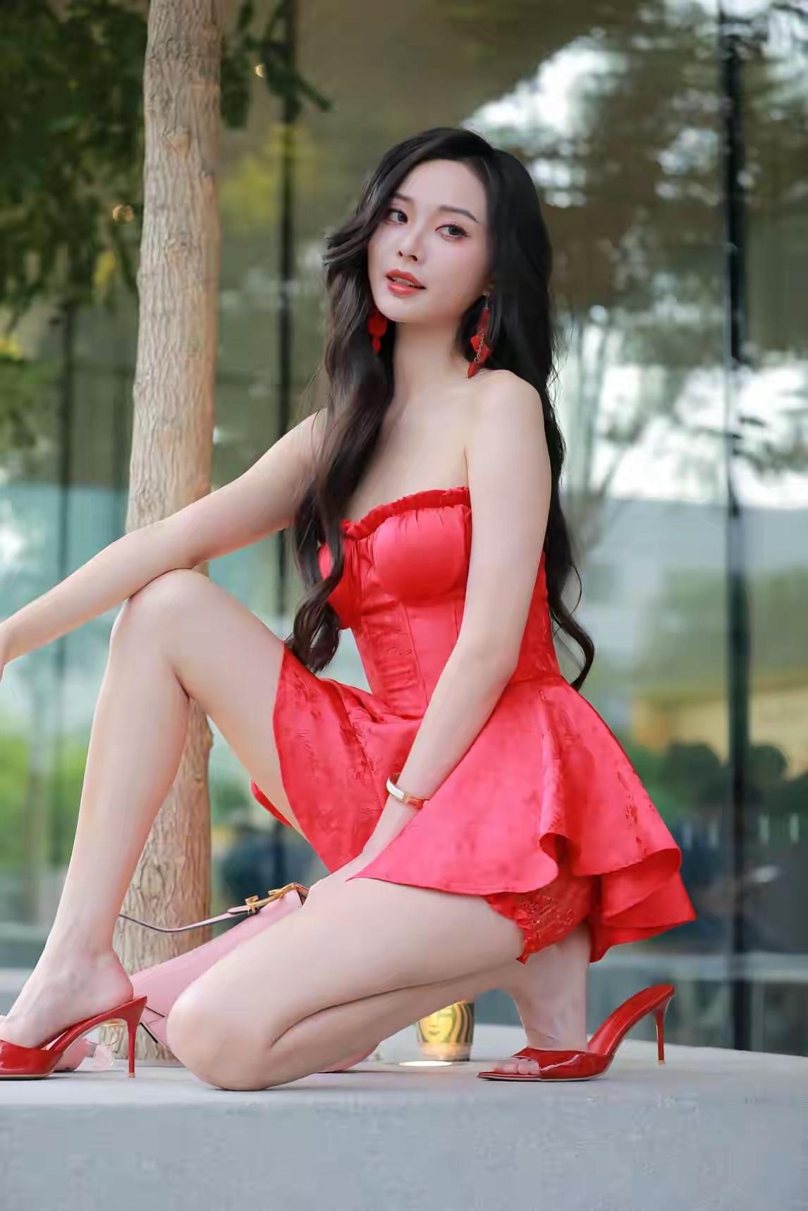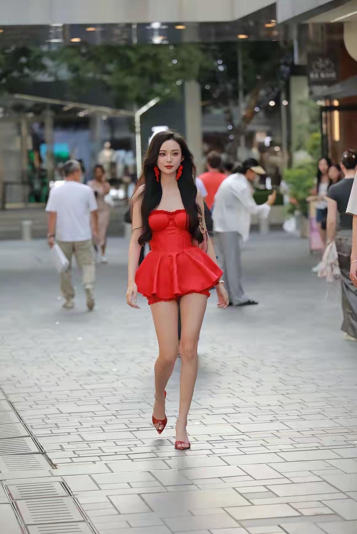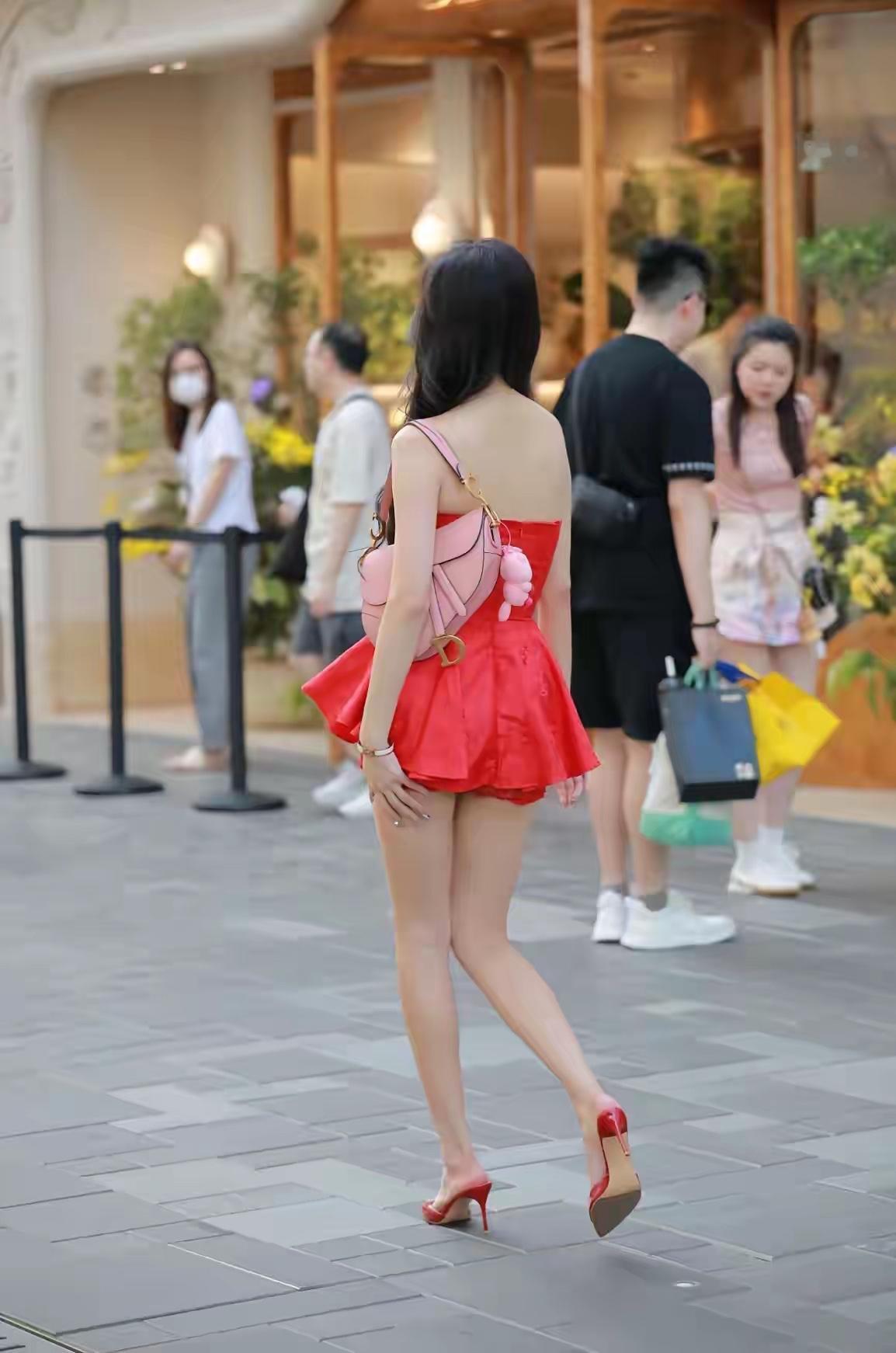 天鹅湖 大黄河 街拍红橙丽人搭配