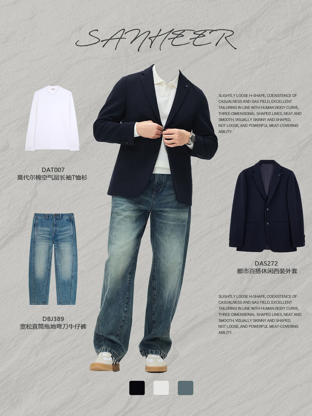 场合全覆盖:职场穿成套西装,周末穿西装搭牛仔