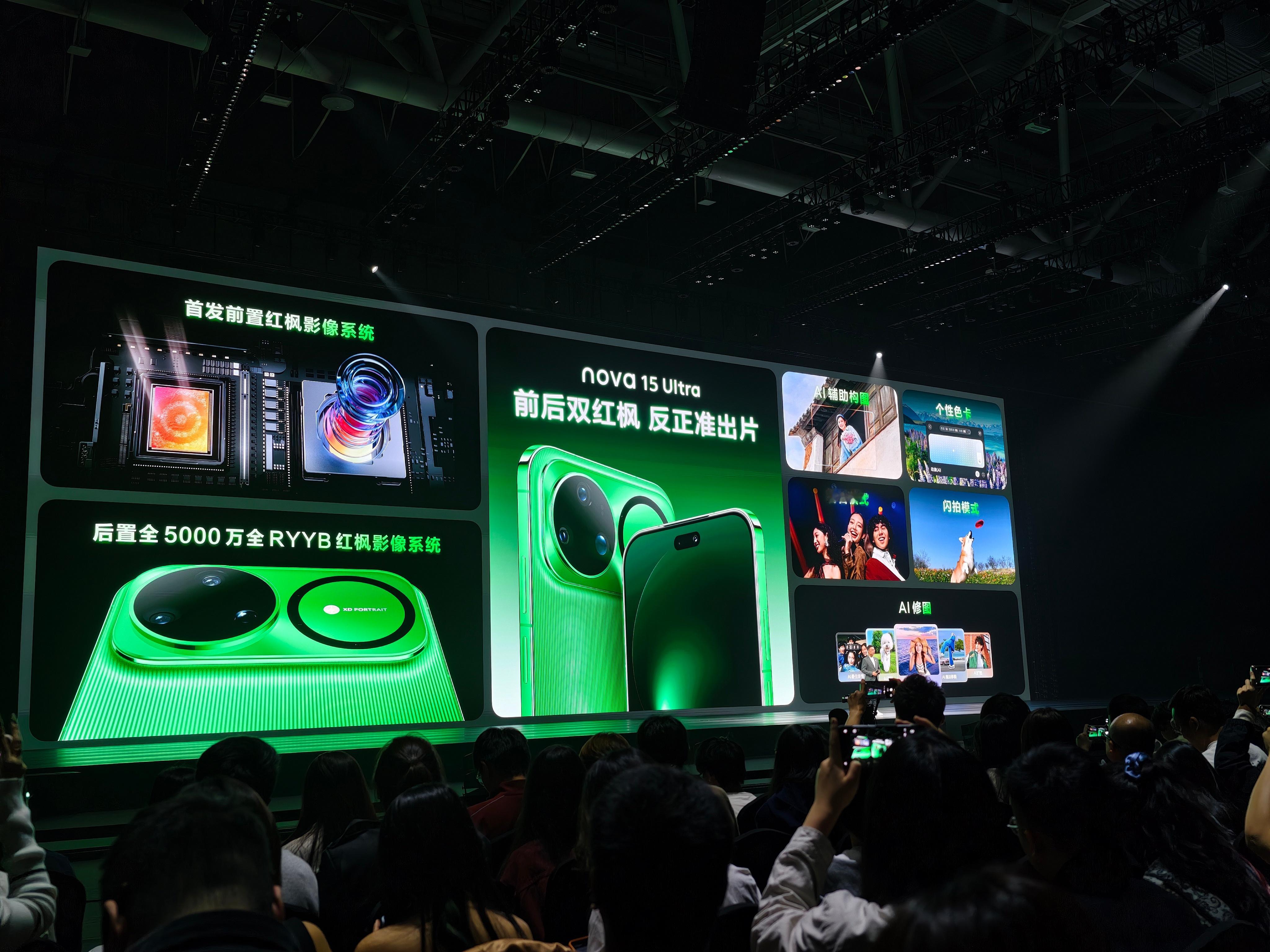 华为nova15正式发布 华为nova 15 Ultra的影像有点东西,行业首发前后双红枫影像。前置5000万红枫影像系统,后置5000万全RYYB红枫影像系统,5000万RYYB超广角微距镜头+5000万RYYB可变光圈主摄+5000万RYYB潜望长焦镜头,这机器影像配置比一些影像旗舰还要强华为nova15及全场景新品发布