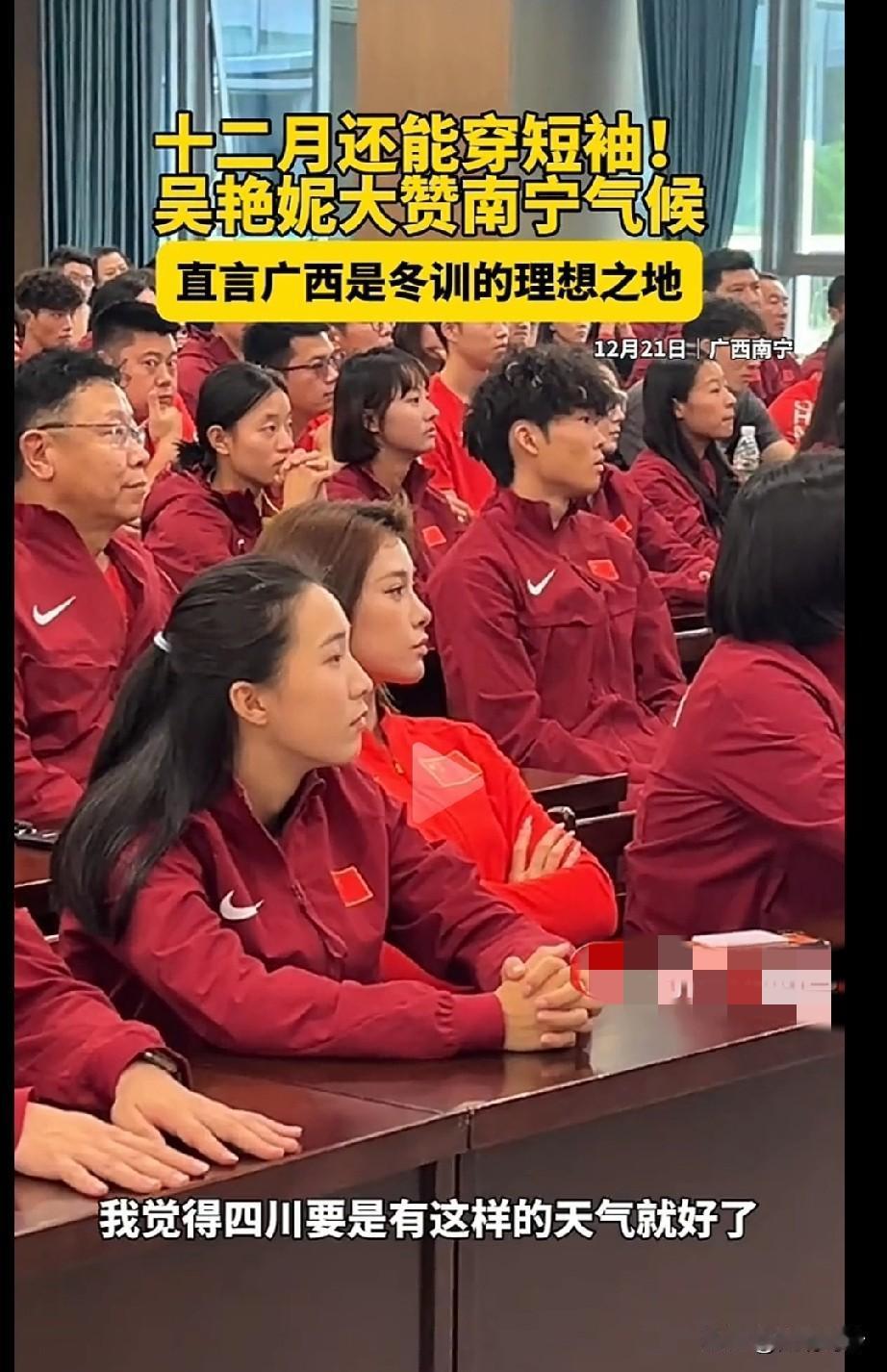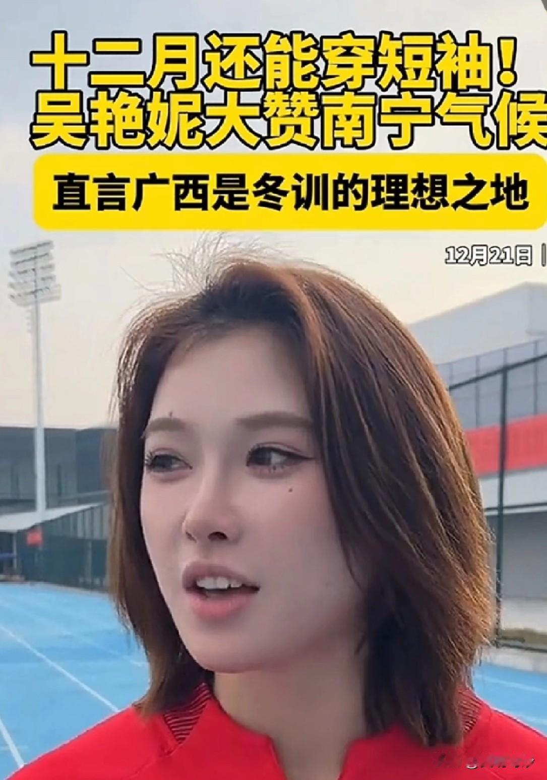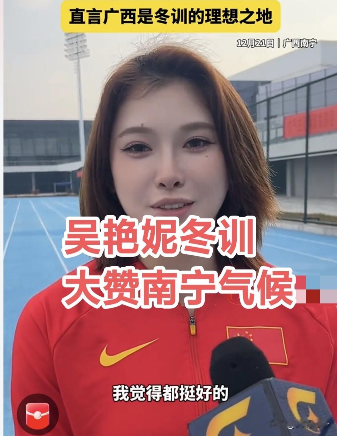 跨栏名将吴艳妮近口狂赞南宁冬训气候:“不冷不热刚刚好,想固定来这练!” 正在南宁参与国家田径队冬训的吴艳妮,在视频中直言不讳为当地天气点赞:“每一次来广西都觉得超好,这天气不冷不热刚刚好,对备战和比赛都特别有帮助!” 她还笑着透露,想跟国家队领导申请,以后冬训都定在南宁。 南宁十二月平均气温约15℃,晴好天气多、日照充足,既无北方严寒刺骨,也无湿冷黏腻,这种温润气候能减少低温对运动员肌肉的刺激,让训练更高效 。 谈及冬训规划与未来目标,吴艳妮态度坚定:“这个冬训重点提升绝对速度和力量,尤其是平跑能力,就是要冲击12秒64的女子100米栏全国纪录!” 她还霸气表示,女子60米栏全国纪录在自己名下,若有人刷新必全力夺回。展望2026年,她希望“循序渐进越来越好”,面对9月的日本爱知·名古屋亚运会,更直言“要有敢于亮剑的态度,珍惜为国征战的机会”。 目前吴艳妮的年纪在几大跨栏名将中是最大的,刘景扬都比她小,林雨薇比她小两岁,夏思凝比她小6岁,明年亚运会时,她将是29岁高龄,遗憾的是自她出道以来,重大赛事,从未拿过冠军,但是在她的精心宣传之下,好多人以为她拿了好多个重大冠军,以至于品牌代言多达十几个,赚的钱满钵满,毫无疑问,吴艳妮已经过了当跨之年,祝愿她在即将坠落之前,如流星一样,燃烧出最后的光亮。 吴艳妮 夏思凝 林雨薇 刘景扬 南宁