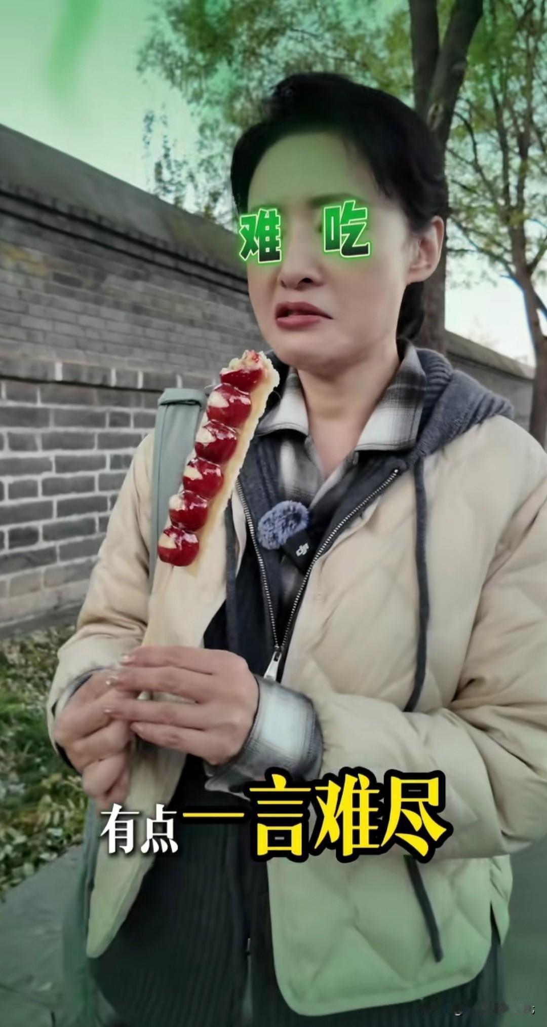 周涛20块钱买了一根糖葫芦,难吃到她一个央视主持人都词穷了。 她听说最近一款糖葫芦特别火爆,就跟风去买了一根,这“奶皮子糖葫芦”20元一根,周涛觉得很不便宜,准备好好品尝。 先咬一小口,没啥感觉,又咬了一大口,当时脸都绿了,满脸都写着难吃俩字,但她又说无法用言语表达。 她最后总结:我实在无法描述,你们自己试试吧。 从头到尾她没说有多难吃,但她的表情似乎又什么都说了。 我是没吃过这种糖葫芦,听有些网友说确实口味很一言难尽,那这突然火起来,是因为太又贵又难吃么?
