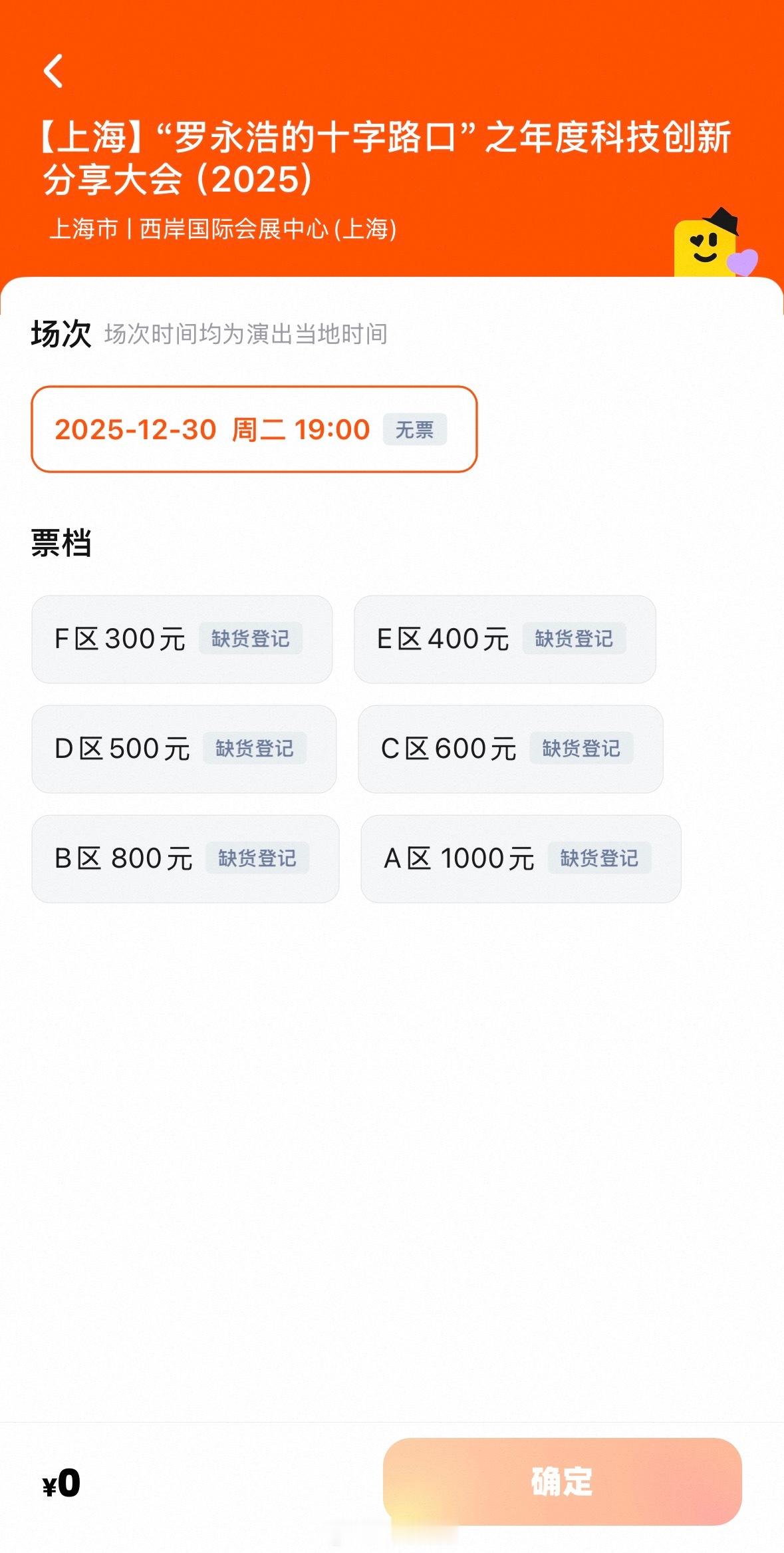 罗永浩年度科技大会千元票秒光 居然售罄了隔壁快飞要去,到时候蹲蹲他们动态