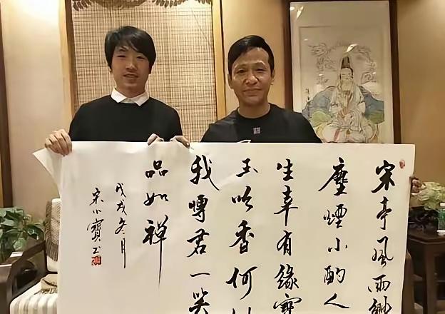 宋小宝拍马屁是一流的! 宋小宝去看望恩师赵本山,赵本山在书房写字,赵本山写完一幅字,宋小宝就说写得好,让赵本山送给他! 赵本山说我给你写一幅吧。然后赵本山写了“山中有宝”几个字给宋小宝(图一)! 说实话啊,我大学学美术的,虽然不是书法专业,但是也见过很多书法名家。平心而论,赵本山这几个字,写得鬼画符一般,不工不巧,丑的死!但是宋小宝一脸的崇拜! 我原本以为宋小宝只是真心崇拜师父赵本山,因为赵本山学历不高,能够经常写毛笔字,不管是附庸风雅也好,还是真爱好也罢,也是值得肯定的。 直到我看到宋小宝自己的字,我才知道,宋小宝是真的会拍马屁,他的毛笔字比赵本山好了不是一两点(图五)! 可以违心的一脸崇拜说赵本山写得好,这马屁真的需要水平!