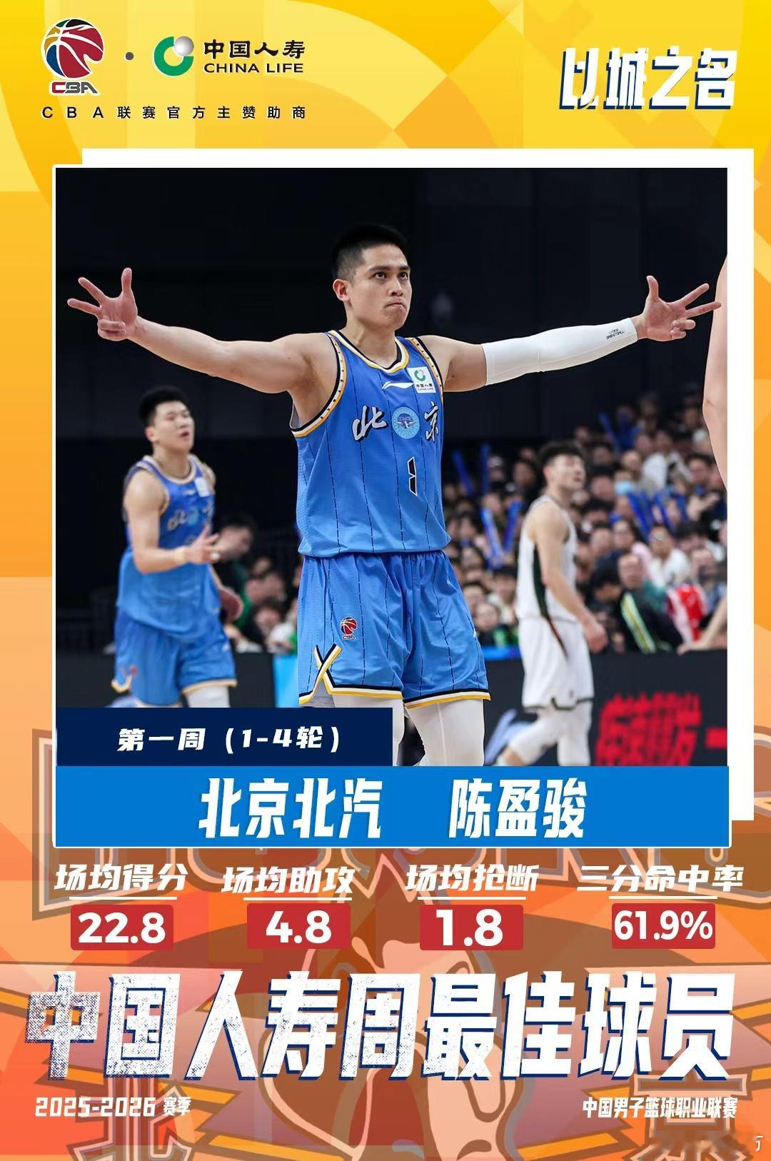 北京首钢 陈盈骏当选CBA官方第一周最佳球员!目前的本土得分王,球队四连胜,连场各种carry,这项殊荣没有一点疑问。希望三连客他保持好身体状态,吃好喝好