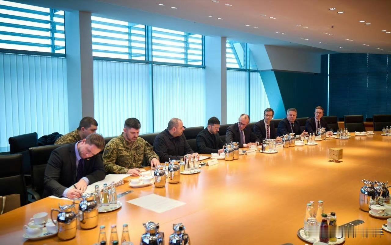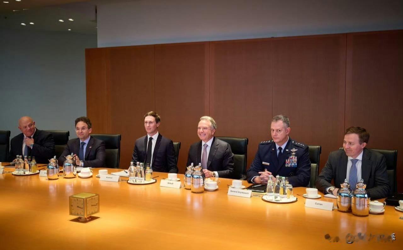最新消息:泽连斯基在柏林与维特科夫和库什纳握手,美乌就和平计划谈判正式开始了。 德国总理默茨也在场。