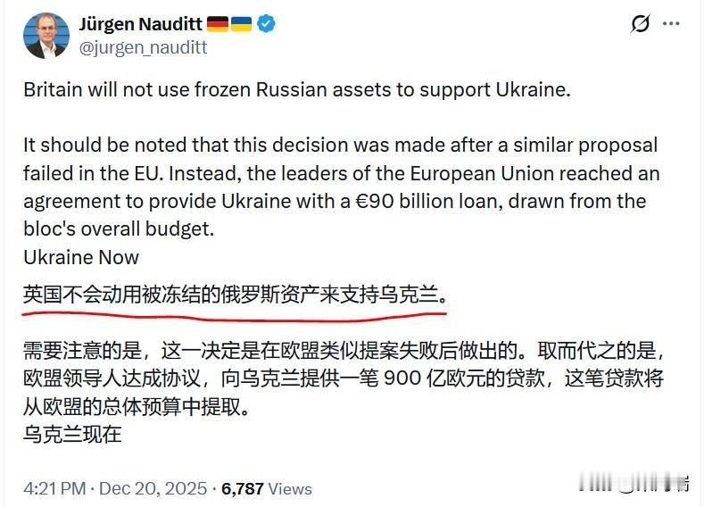 欧洲24国决定集体借钱资助乌克兰,但是英国已经退欧,显然不参加有关借贷,然后说自己效仿欧洲,不会动用被冻结的俄罗斯资产…… 真特么坑欧洲没商量啊。 英国的立场: 英国政府排除了使用其银行中约80亿英镑(约合110亿美元)被冻结俄罗斯资产的计划,因为任何此类举动都需要与七国集团(G7)和欧盟伙伴密切协调。英国官员表示,他们不会在没有国际伙伴的情况下采取行动。 欧盟的决定: 经过长时间谈判,欧盟领导人同意向乌克兰提供一笔900亿欧元(约合1050亿美元)的贷款,期限为两年。这笔贷款将通过欧盟的整体预算进行融资,而非直接动用被冻结的俄罗斯资产。 资金来源: 欧盟将通过在资本市场借款筹集这笔资金。乌克兰只有在俄罗斯支付战争赔款后才需要偿还这笔贷款。欧盟预算将承担利息费用。 法律与政治考量: 直接使用俄罗斯资产的提案遭遇了包括比利时在内的一些成员国的反对,主要出于对俄罗斯潜在法律报复和法律先例的担忧。俄罗斯总统普京称任何使用其资产支付乌克兰赔款的尝试都是“抢劫”。
