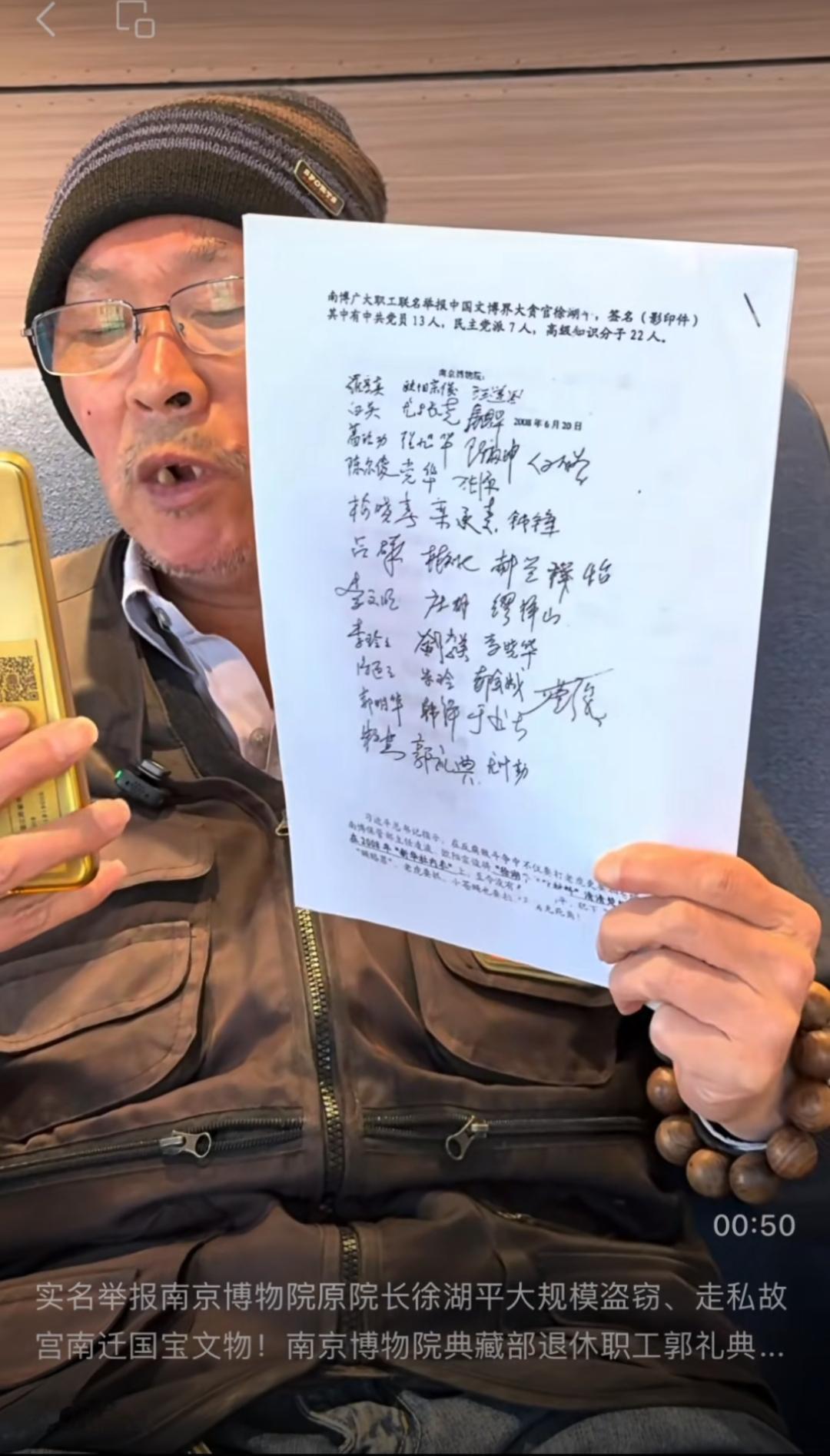 南博前院长徐湖平回应被退休员工实名举报:会在合适时机发声! 南博前员工实名举报徐湖平并展示出来了40多名人员的联名信,这个举报联名信早在2008年就已经签署好了,但是一直没有下文。 现在借此次南京博物院关注度非常的高,又在网络上进行了实名举报,希望能够得到相关部门的重视进行彻底的调查。 各位是怎么看的?欢迎评论区留言。