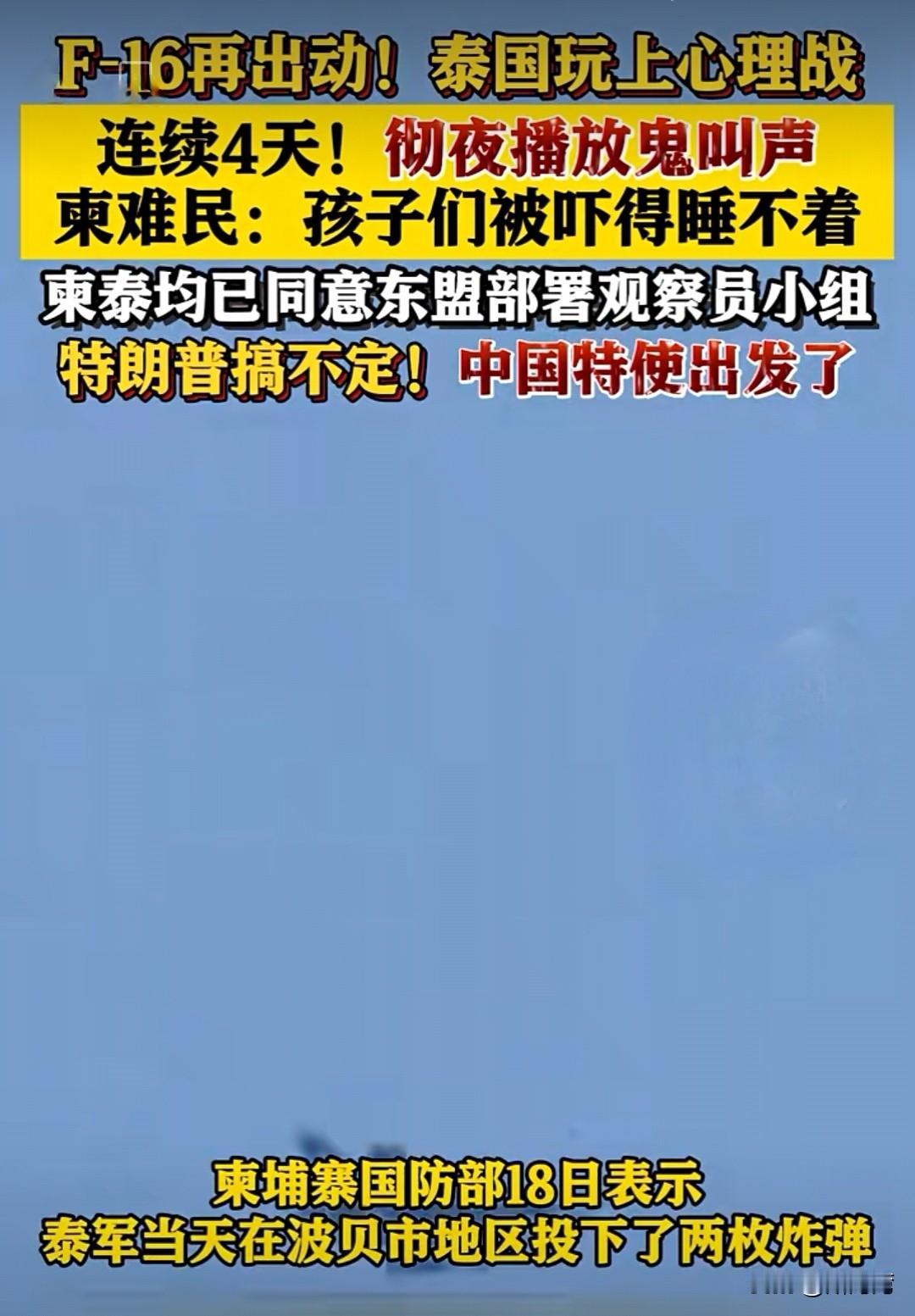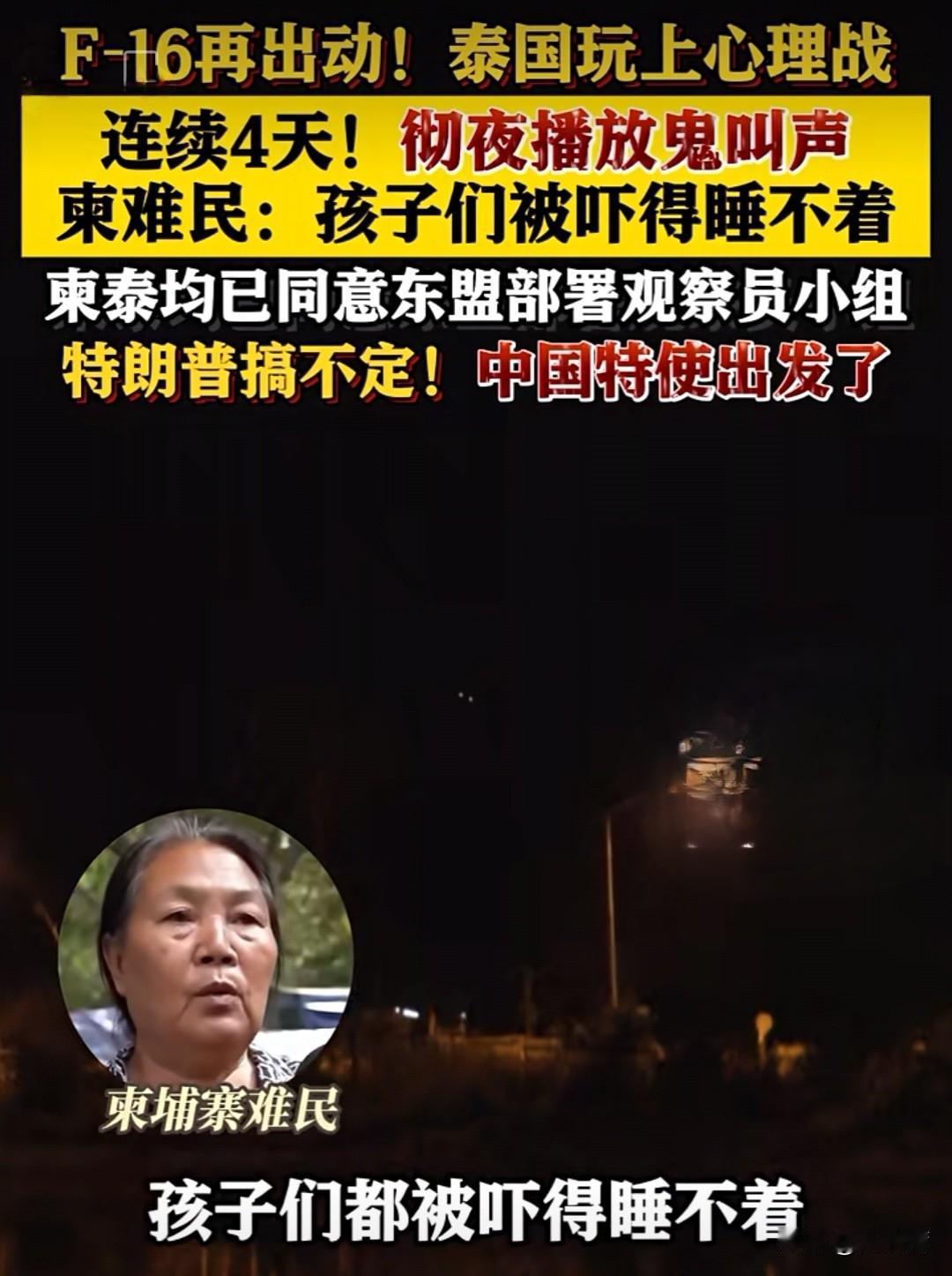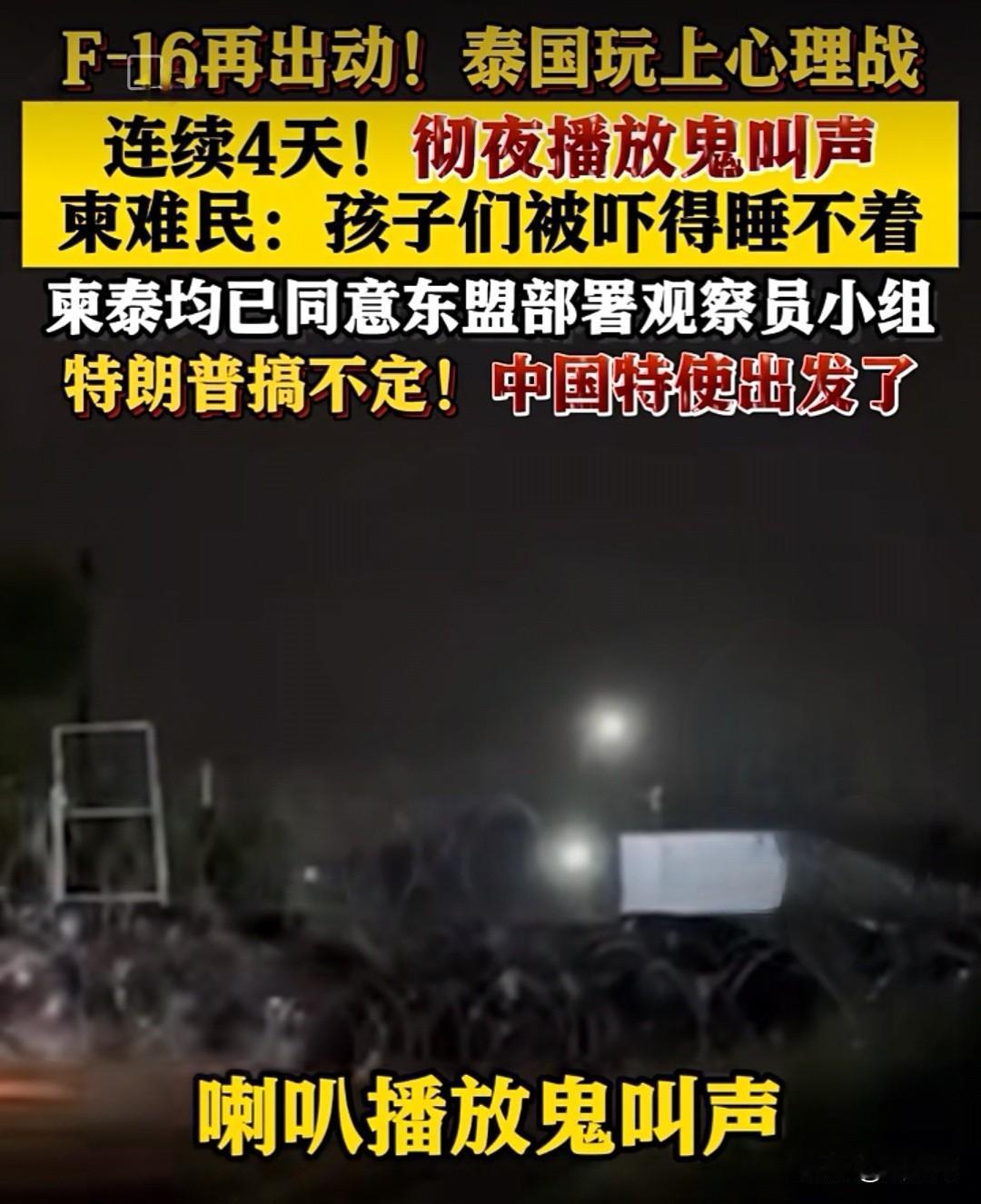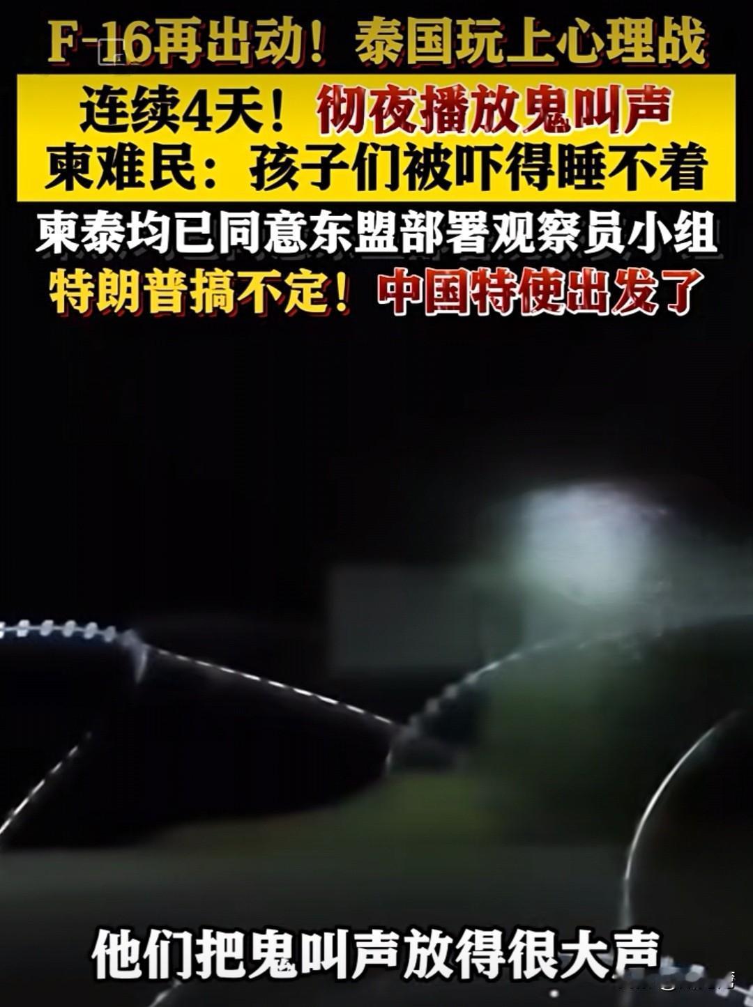 F16再出动,泰国玩心理战! 连续四天,在与柬埔寨的边界旁彻夜播放鬼叫声! 柬埔寨难民:孩子们被吓得睡不着也不敢睡! 泰国这一招可真够损的,不滥杀无辜但也不放过柬埔寨的老百姓。客观的说,这逼柬埔寨难民远离泰柬冲突地方也是无奈之举,不然两国战火一开打,子弹不长眼,柬埔寨难民可就要遭殃了。