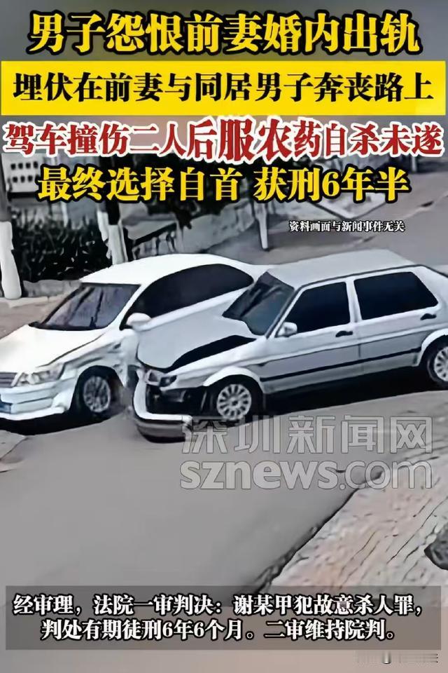 江西宜春,男子离婚多年,仍对前妻及其出轨对象怀恨在心,于是蹲守在二人必经之路上,准备将两人撞死。作案后,男子立即逃离,并在山里喝农药自杀,可最后,前妻二人只受了轻伤,男子自杀也未能成功,反而因此获刑。 据深圳新闻网报道,谢某甲和苏某曾经是夫妻关系,可是随着时间的流逝,二人感情归于平淡,苏某背叛家庭和谢某乙在一起了。 谢某甲得知妻子背叛了自己非常气愤,可苏某心意已决,最终二人协议离婚。 离婚后,苏某和谢某乙生活在一起,谢某甲本应该放下过去,重新开始生活,可离婚多年,他仍对苏某和谢某乙耿耿于怀。 谢某甲认为,谢某乙破坏了他的家庭,苏某背叛了他们的婚姻,于是决定找机会报复二人。 今年6月10日,谢某甲得知谢某乙的母亲离世了,谢某甲知道,谢某乙和苏某肯定会回万载县老家去奔丧,于是,6月13日,谢某甲一早驾驶小货车来到谢某乙和苏某的必经之路上。 当天早上5点半左右,谢某乙骑摩托车带着苏某路过该路段时,谢某甲开着摩托车尾随二人,并加速撞向摩托车。 摩托车倒地,谢某乙和苏某摔倒在地,谢某甲驾驶小货车逃离。 谢某甲以为自己已经将二人撞死了,于是来到山里,准备喝农药自杀,但未能成功。6月15日凌晨,谢某甲在家属的陪同下投案自首。 后经鉴定,谢某乙和苏某并无大碍,二人只构成轻伤一级。得知是谢某甲撞的他们,谢某乙和苏某对他出具了谅解书。 那么?本案从法律角度应该如何分析? 首先,苏某在与谢某甲婚姻关系存续期间,与谢某乙产生不正当关系,这一行为严重违背公序良俗,破坏了谢某甲与苏某的婚姻家庭。 但是,从法律角度看,目前法律并没有直接针对婚内第三者插足行为进行刑事处罚的明确条款。 在民事方面,根据《民法典》第一千零九十一条规定,有下列情形之一,导致离婚的,无过错方有权请求损害赔偿: (一)重婚; (二)与他人同居; (三)实施家庭暴力; (四)虐待、遗弃家庭成员; (五)有其他重大过错。 苏某在婚姻存续期间与他人产生不正当关系,谢某甲作为无过错方,在离婚时可依据此条要求苏某给予损害赔偿。 离婚多年后,谢某甲仍耿耿于怀,策划了撞人事件报复谢某乙和苏某,其行为构成故意杀人罪。 根据《刑法》第二百三十二条规定,故意杀人罪是指故意非法剥夺他人生命的行为。故意杀人的,处死刑、无期徒刑或者十年以上有期徒刑;情节较轻的,处三年以上十年以下有期徒刑。 谢某甲认为谢某乙破坏了他的家庭,苏某背叛了婚姻,从而产生了杀害二人的动机,并实施了驾车撞向二人骑摩托车的行为,该行为具有严重危及他人生命的现实危险性,胡谢某甲构成故意杀人罪。 案发后,谢某乙和苏某为谢某甲出具了谅解书,谢某甲是否就不用受到处罚了呢? 谢某甲一案属于公诉案件,公诉案件是指由各级检察机关依照法律相关规定,代表国家追究被告人刑事责任而提起诉讼的案件。 谢某甲驾车故意撞击谢某乙和苏某,其行为构成故意杀人罪,故意杀人罪属于严重危害社会秩序和公共安全的犯罪,依法应由检察机关代表国家提起公诉,而非由被害人自行决定是否追究。 在公诉案件中,被害人谅解会对案件处理产生一定影响,但并非决定因素。 被害人谅解体现了被害人的意愿和态度,在量刑时,会将其作为一个酌情从轻的情节予以考虑。 但公诉案件的核心是维护社会公共利益和法律秩序,犯罪行为侵犯的不仅是被害人的个人权益,更破坏了法律所保护的社会关系。 所以,即使有被害人谅解,也不意味着犯罪嫌疑人可以免除刑事处罚,最终仍需依据法律规定和犯罪事实进行定罪量刑。 最终,一审认为,谢某甲因意志以外的原因未能得逞,导致谢某乙和苏某仅受轻伤一级,属于犯罪未遂。 根据《刑法》第二十三条规定,已经着手实行犯罪,由于犯罪分子意志以外的原因而未得逞的,是犯罪未遂。对于未遂犯,可以比照既遂犯从轻或者减轻处罚。 其次,谢某甲虽主动投案,但庭审时否认杀人的故意,故不认定自首或坦白,但鉴于其主动投案,可酌情从轻处罚。 另外,鉴于谢某乙和苏某对谢某甲出具了谅解书,可作为酌情从轻处罚的情节。 综合以上因素,判处谢某甲有期徒刑6年6个月。 一审判决后,谢某甲不服上诉,二审维持原判。