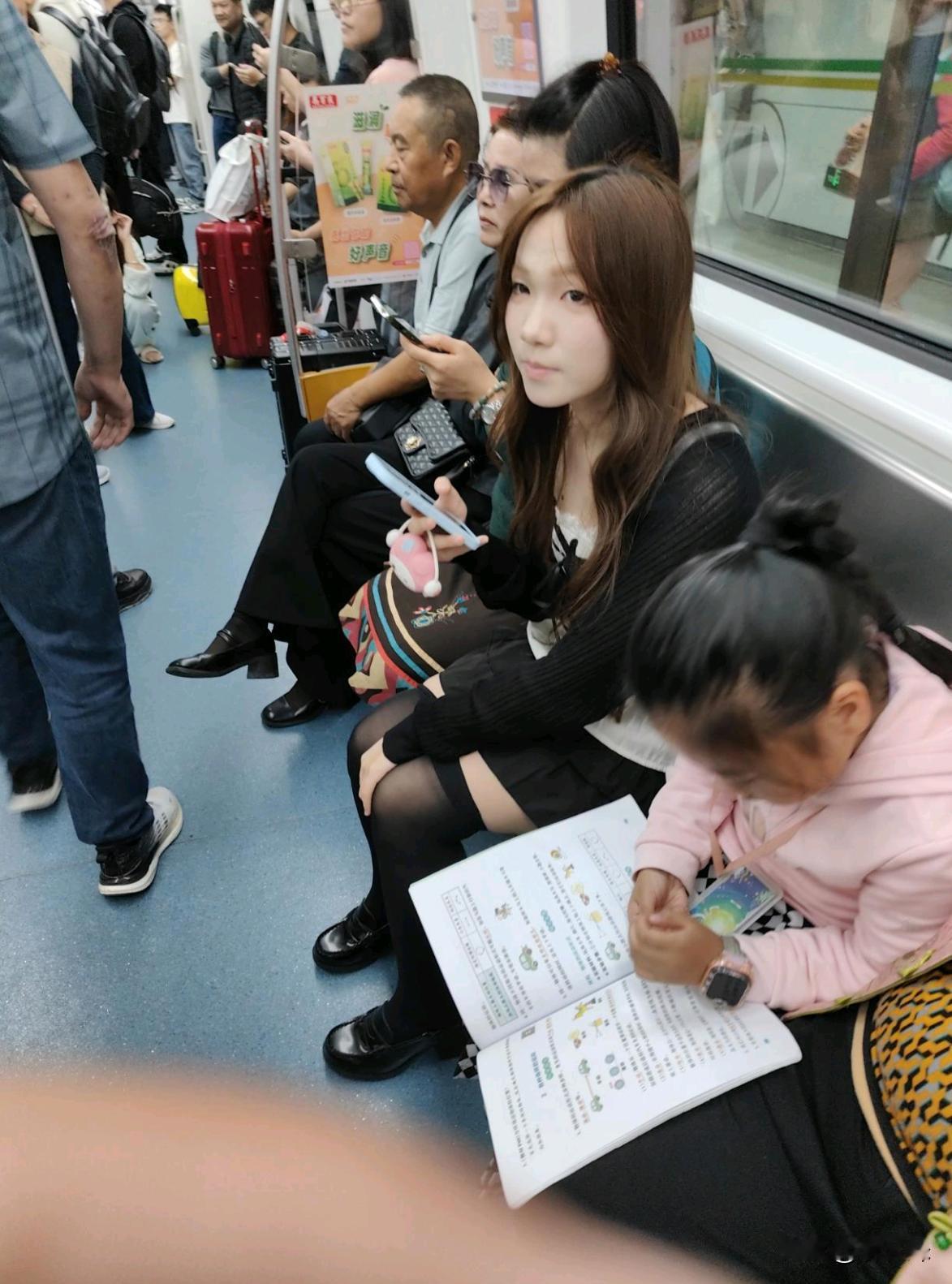 现在的小孩子也太卷了,在地铁上写作业都困得睡着了