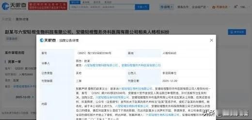 12月22日,赵丽颖因整形医院致歉事件冲上热搜。据天眼查显示,法院公开了六安轻橙