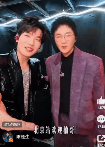 陈楚生北京演唱会嘉宾是孙楠,两个人在后台互夸,哈哈,夸的好! 预想到北京场会有嘉宾,没想到是孙楠,想想也对,葫芦兄弟里的大哥,对陈楚生呵护有加,两个有才华的歌者惺惺相惜,《无名的人》在北京演唱也是绝配! 两个人唱的都非常好,有幸能够相遇也是他们的缘分,音乐的传递,前行没有终点。 《荒芜之境》马上要结束了,北京场很顺利,新编的致敬迈克尔杰克逊版本的《晚礼服》彻底火了,看得出来陈楚生也很满意,最后一天结束后脸上都笑开了花,深圳见! 期待深圳收官也有惊喜吧!陈楚生 陈楚生综艺