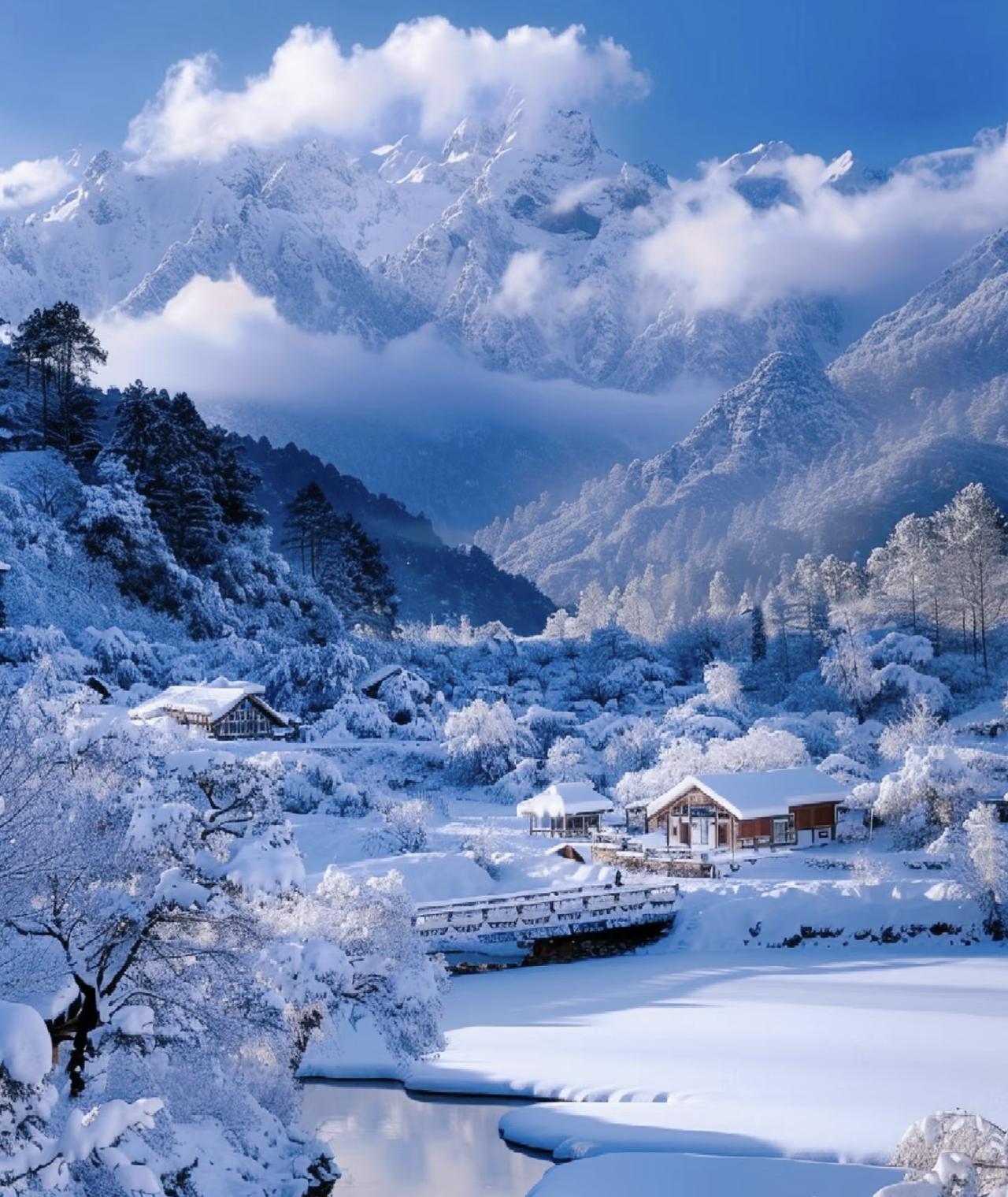 《冬雪吟》 朔气凝云暮色垂,璇花一夜绽千枝。 寒侵江国鹤失语,风卷重城絮作帷。