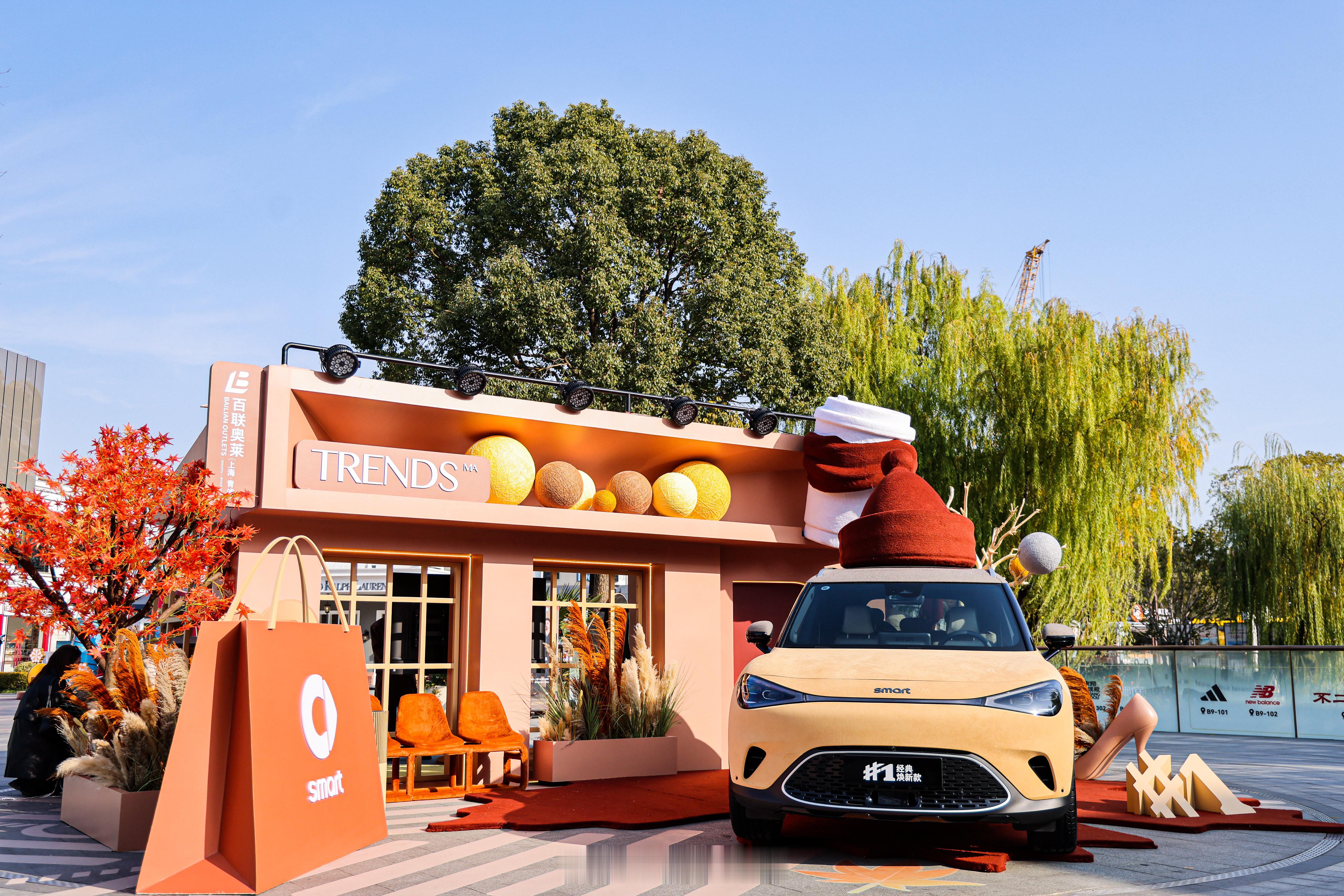 每到周末,上海奥莱的人流量就很大。最近周末逛奥莱的,会被 smart 1 的「沪上时髦局」拦一下脚步。诶,这车放在这儿还挺对味的。这是一台台「漫游棕迹」改装车,就像一套秋冬穿搭:棕色系、千鸟格、翻毛皮,全是当下流行的审美语言。这更像是在表达一种生活状态:周末出门、朋友见面、城市里慢慢晃。Smart的车在上海的郊区不太常见,越靠近市中心出现的概率就越高!