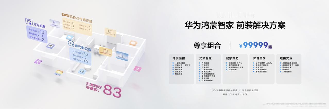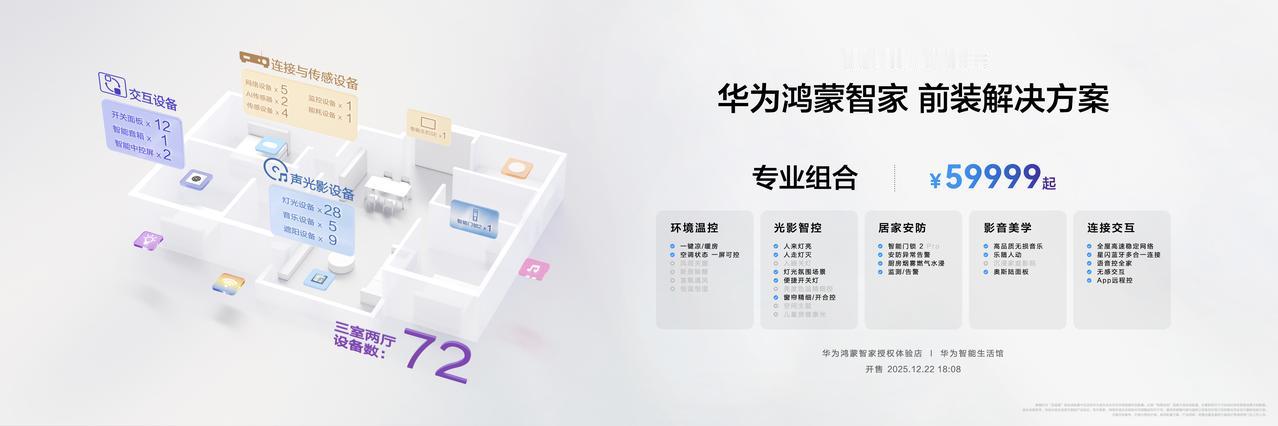 华为放大招!全屋智能最低仅需9999元,24小时装完回家直接体验“科幻生活”。 华为新品发布会重磅推出鸿蒙智家全屋智能套装,全面覆盖90-120㎡三室两厅户型,提供前装与后装两类解决方案。 前装三大套餐,满足不同需求: 标准版29999元——支持全屋PLC联网和Wi-Fi7覆盖,实现灯光、窗帘、空调智能控制,并配备厨房烟雾监测。 专业版59999元——升级儿童房灯光与窗帘控制,加入空气净化与恒温恒湿功能,提供燃气、水浸、烟雾三重安全监控。 尊享版99999元——新增智能门锁Pro、玄关2K摄像头、彩色灯带及天空环绕音,打造高品质居家场景。 针对已入住或旧房改造用户,后装方案24小时内即可完成安装: 尝鲜版9999元起、标准版25999元、专业版49999元。 套餐涵盖照明、遮阳、安防、AI康养监测、老幼起夜感应和厨房三重安全监控,实现全龄守护与多场景智能生活,全方位满足家庭便捷、安全、舒适需求。 华为推出全屋智能套装最低9999元起
