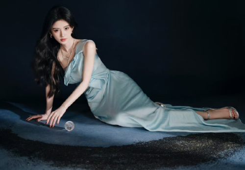 鞠婧祎的浅蓝色单肩高定,美得不可胜收,超nice的!