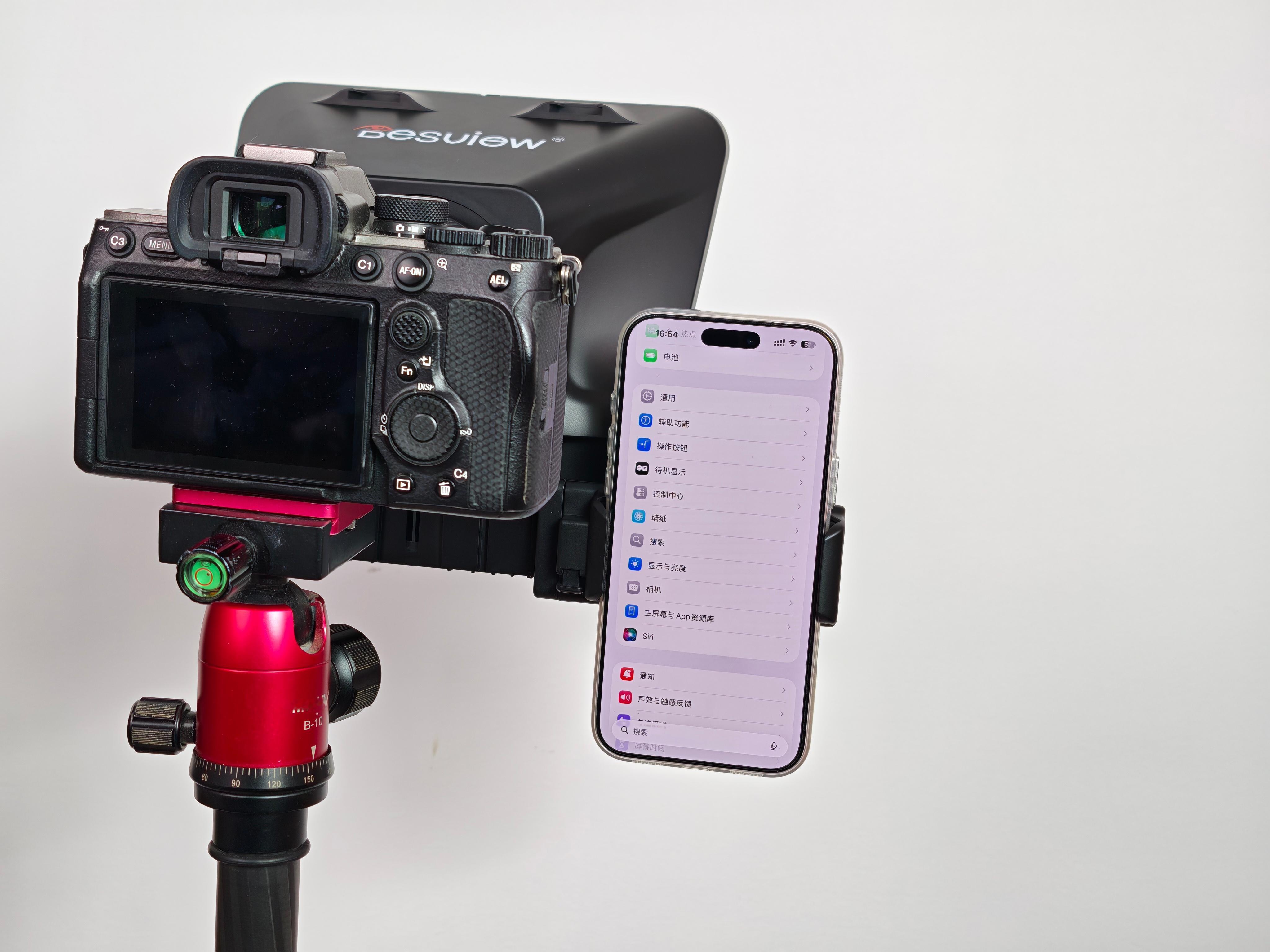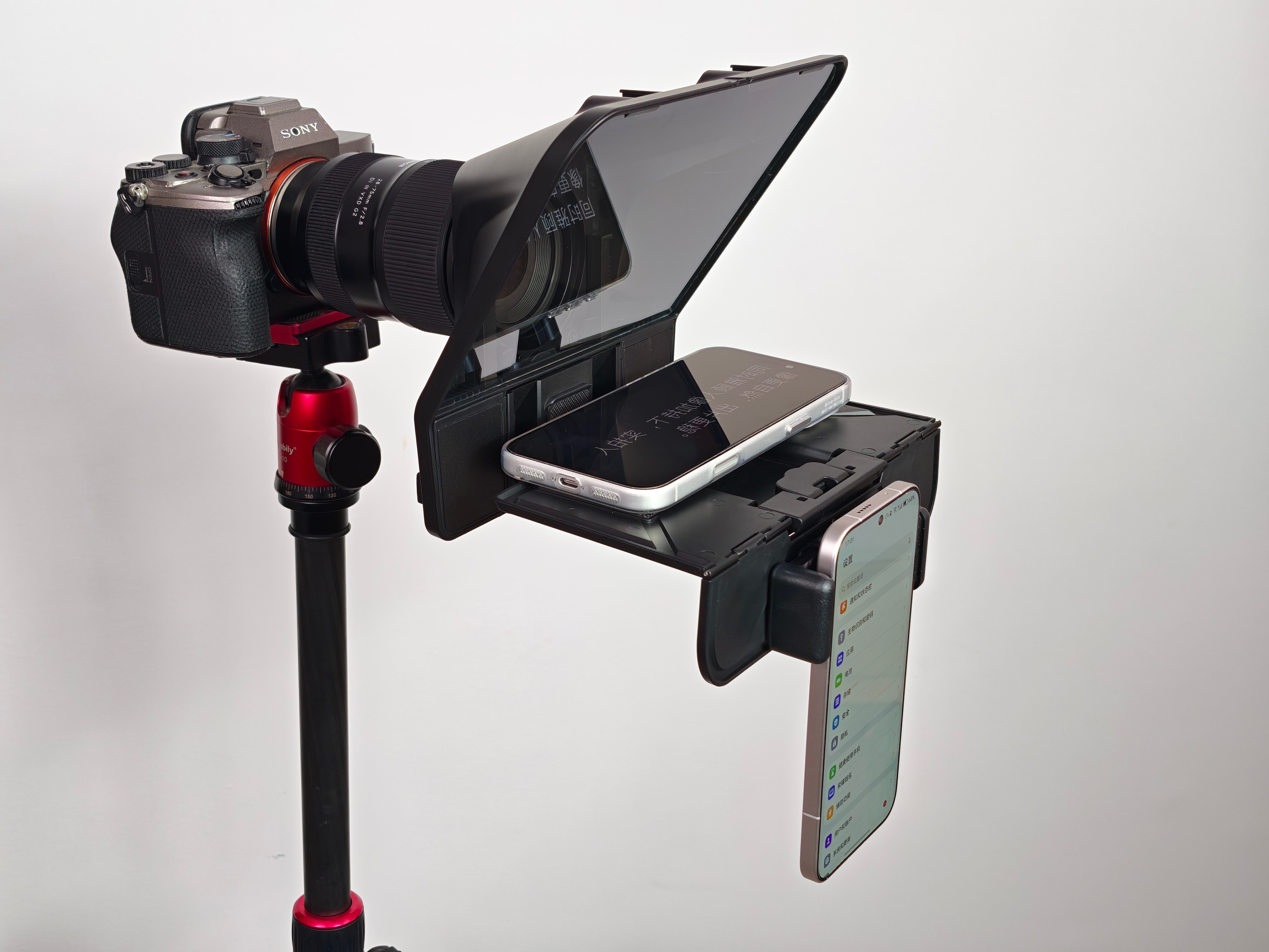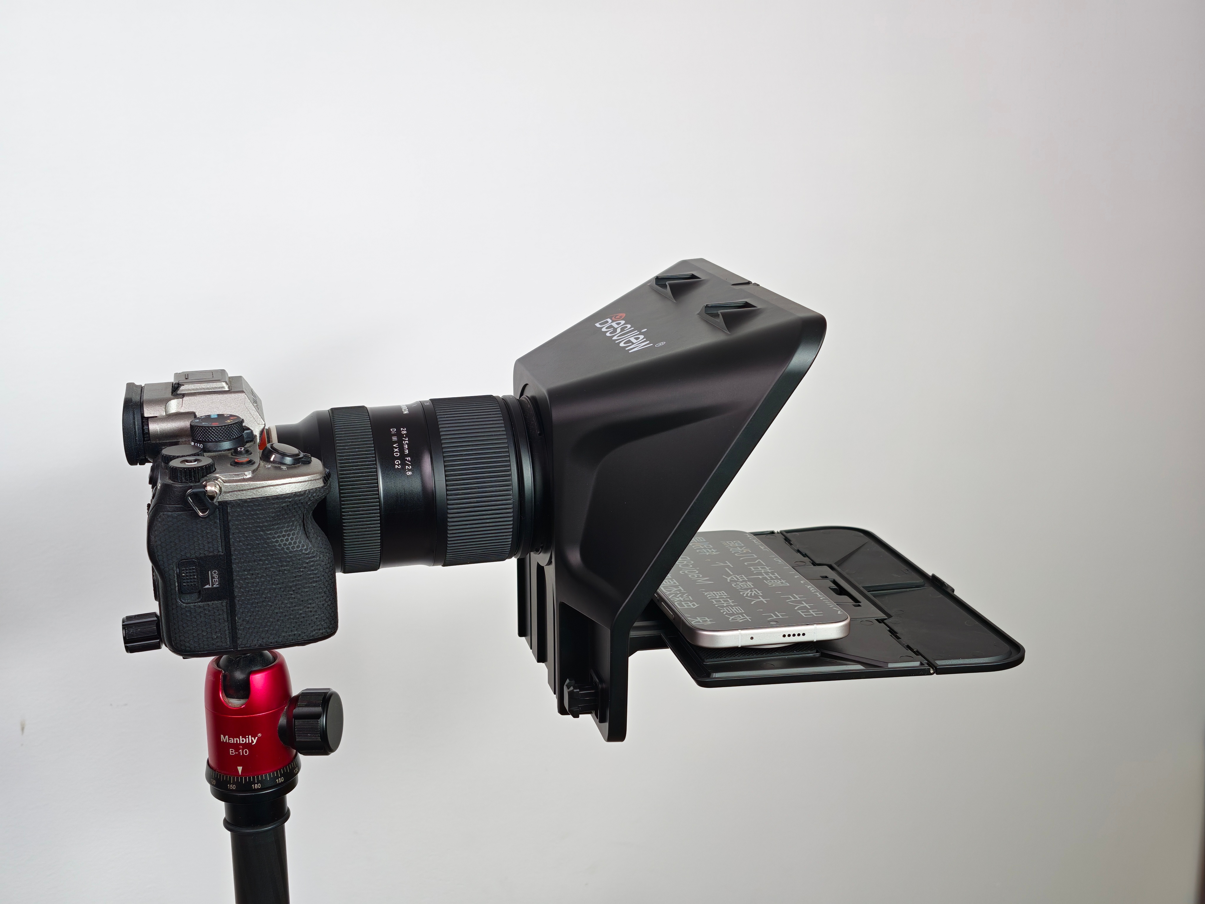 专业提词器还得看百视悦,最近视频拍摄需求变多,入手了全新的百视悦T5提词器,百视悦T5在保证好用的同时,还加入很多创新设计,体验大幅度提高。(1)卡扣式提词器托板,支持手机、平板,而且自带伸缩夹板,大尺寸平板也有很好的稳定性,顶部有双冷靴接口,可以外接补光灯和麦克风。(2)提词器最重要的还是反射的清晰度,T5使用专业分光玻璃,高透光率,题词清晰;创新双屏设计,自带手机夹,可以把手机固定在提词器前面,随时看到弹幕反馈,及时调整。(3)百视悦T5不只是相机提词器,同时还是手机提词器,底部1/4通用螺丝孔可以把提词器固定在三脚架上,使用专用手机夹和遮光板,可以实现手机拍摄。百视悦T5自带不同口径的相机转接环,再加上多卡扣式安装,广泛适用各种场景,直播、视频拍摄、网课录制,省心又专业,媒体人必备的专业工具。