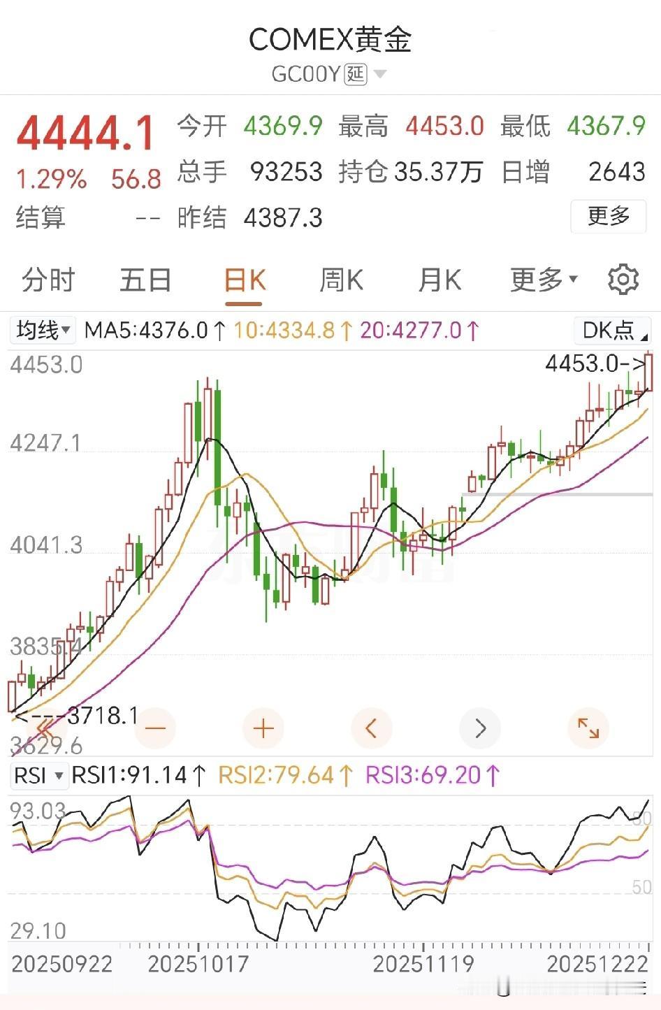 今天,黄金冲破前高点,创出4453美元,估计明年黄金还会继续上涨! 目前美乌柏林会谈取得进展,但双方在顿涅茨克控制权等关键问题上仍存在分歧。 美国对委内瑞拉油轮实施封锁与扣押,美国以“缉毒”为由进行制截,委内瑞拉则谴责美方行霸道行为,军事行动将会升级! 国际炒家为避险、对冲,造成黄金的价格又创新高!