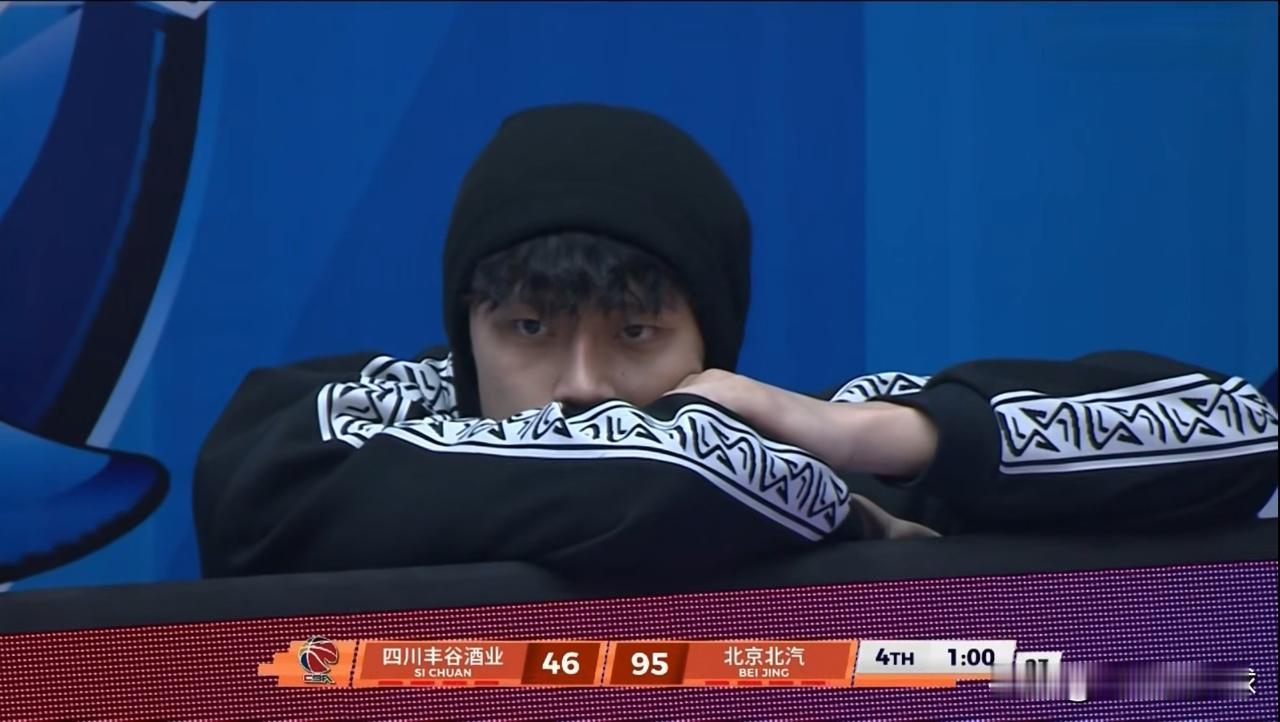 北京北汽新星曾凡博真是太让人心疼了!在今天北京北汽客场挑战四川丰谷酒业的比赛中,当时比赛进行到了第四节的最后1分钟,北京北汽以95:46领先对手,此时转播镜头给到了场边的曾凡博,只见他神情落寞的趴在广告牌上,一副可怜巴巴的模样,整个人看起来非常失落和无奈,让人看着好不心疼。