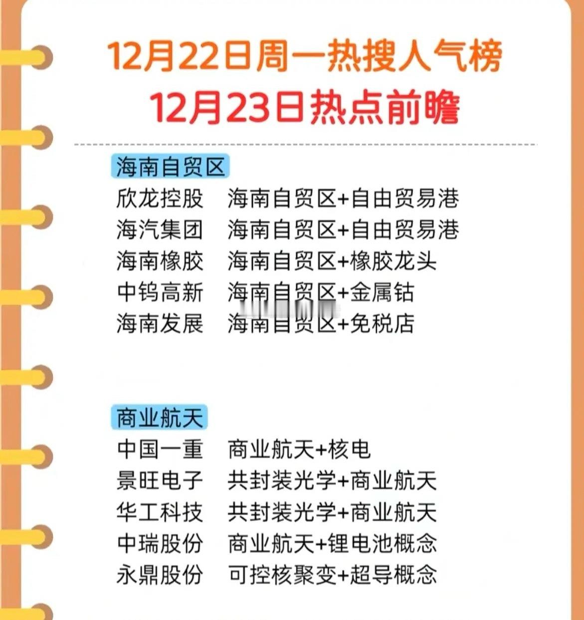 明日 人气热搜+市场热点 前瞻!1.海南自贸港,免税概念2.商业航天3.CPO共封装光学+PCB4.存储芯片