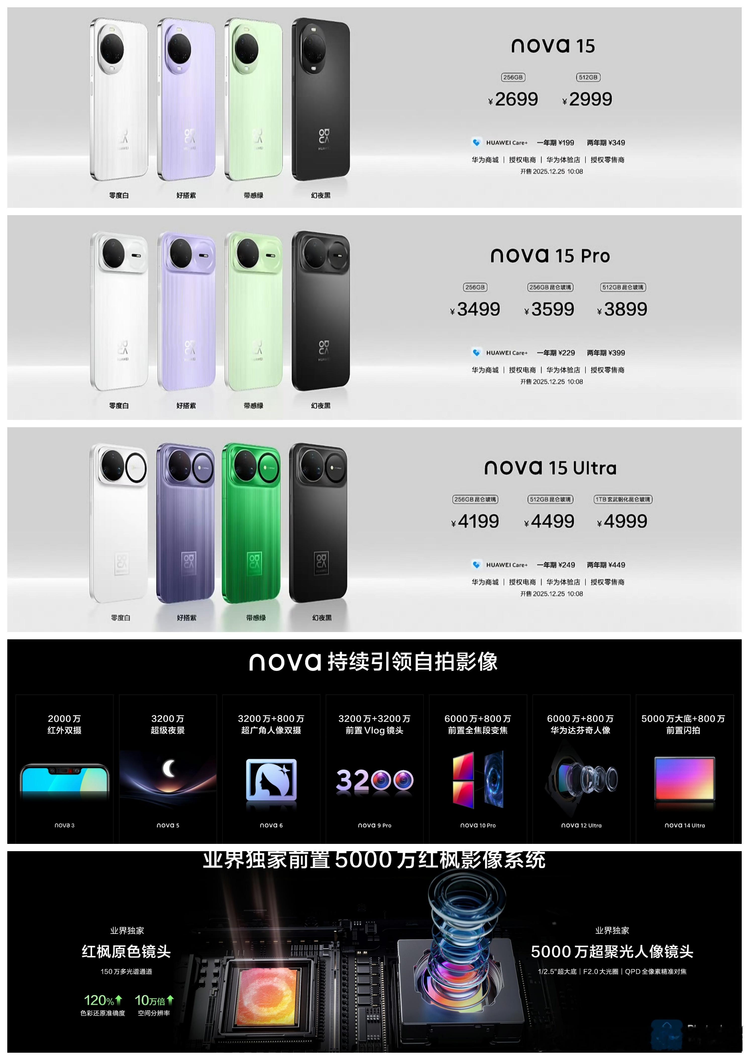 华为Nova 15系列发布,这价格可还行?华为Nova 15:256GB售价2699元;512GB售价2999元。华为Nova 15 Pro:256GB售价3499元;256GB昆仑玻璃版3599元;512GB昆仑玻璃售价3899元。华为Nova 15 Ultra:全系昆仑玻璃,256GB售价4199元;512GB售价4499元;1TB版售价4999元。华为nova15正式发布
