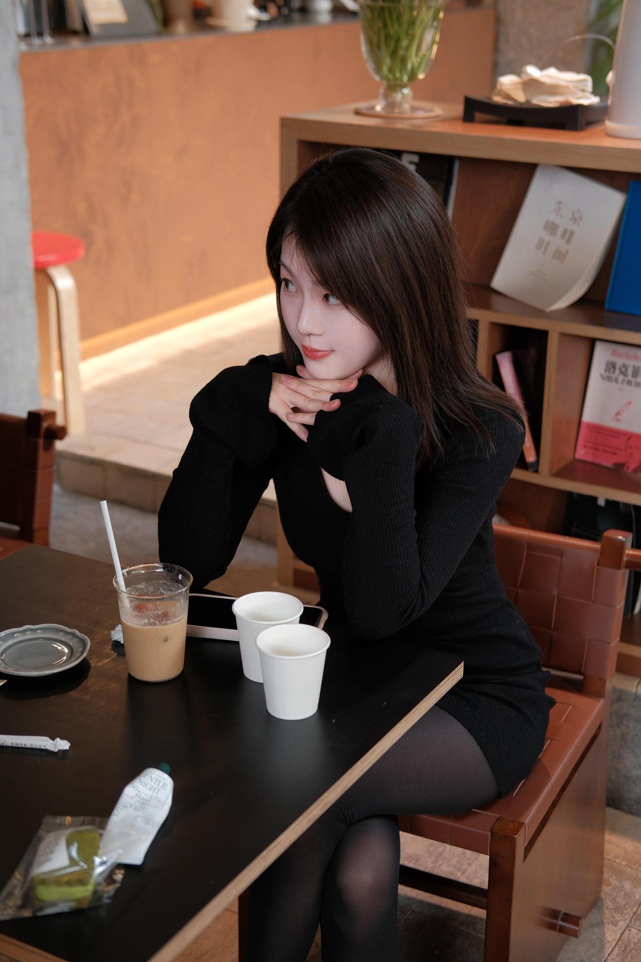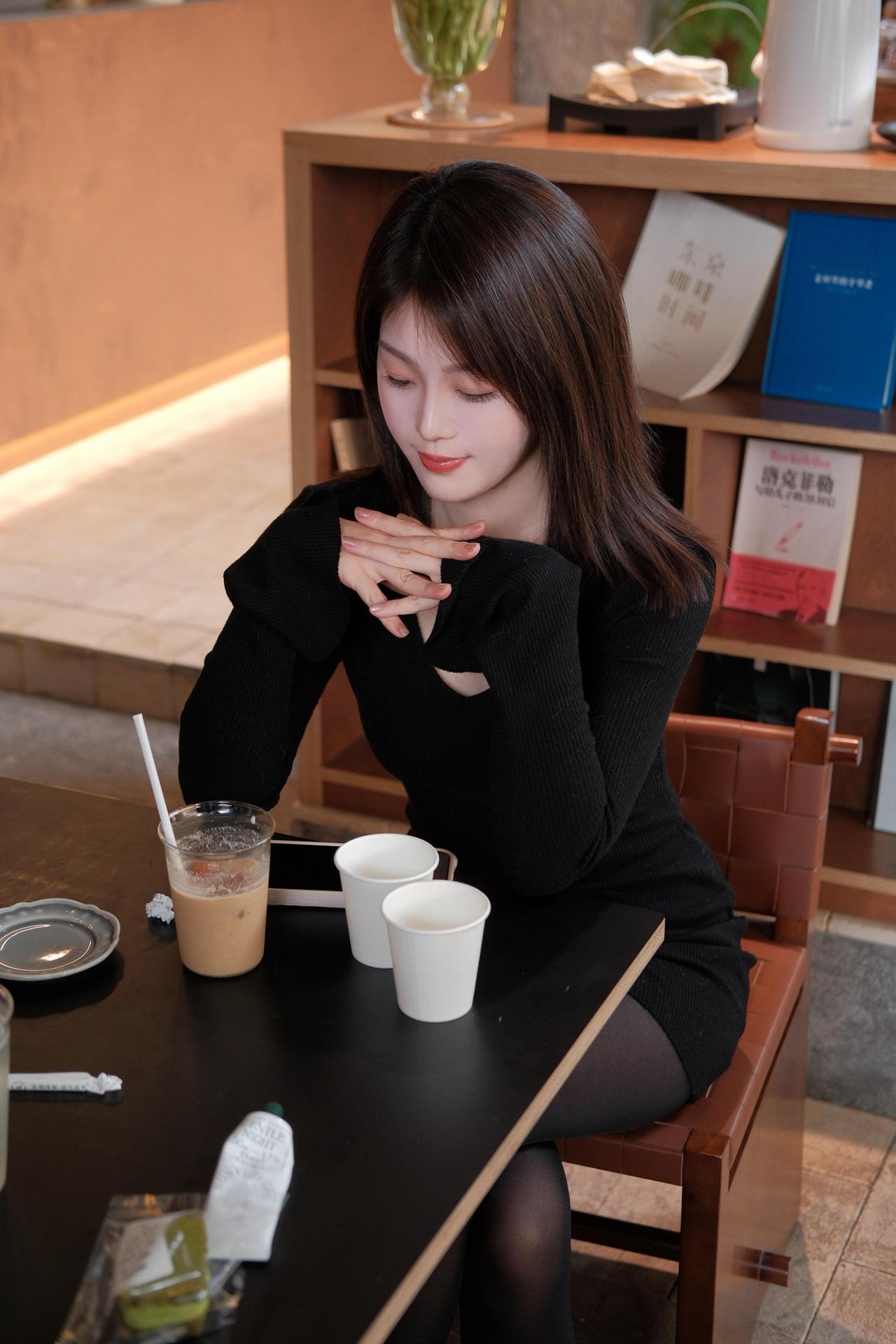 画堂春·咖馆闲思 黑衫轻裹鬓边霜,茶烟漫绕方塘。 白杯双立墨桌旁,奶茶凝乳香。 指扣檀唇思半晌,眸光斜落书箱。 几行文字懒相将,心随云影扬。 窗外晴光穿木格,风摇瓶里青杨。 人间闲事最悠长,不催归鸟去,不数落花忙。 只把杯中甜苦味,慢慢尝, 此间慵懒,胜却百千章。
