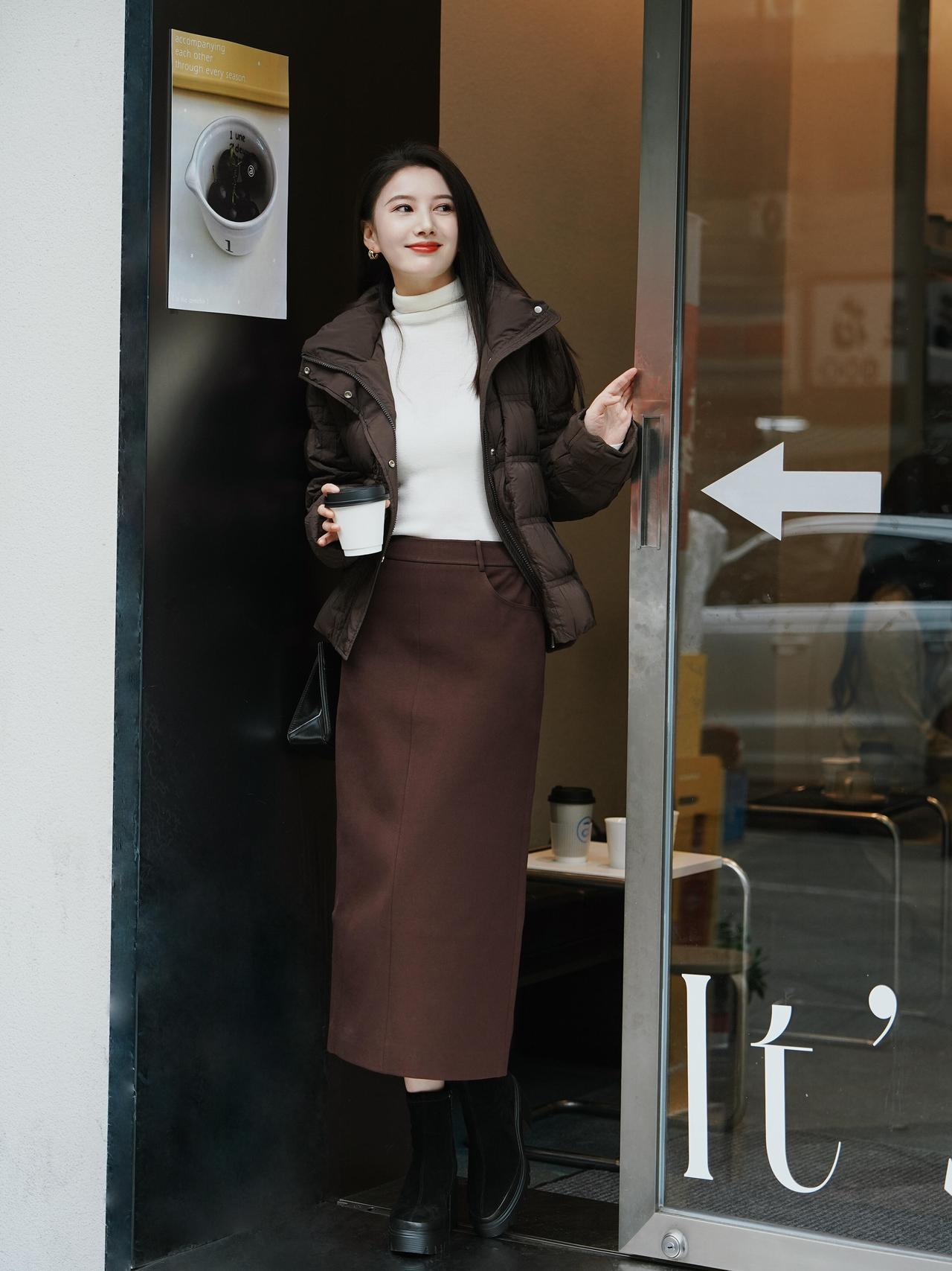 秋日穿搭指南黑色高领毛衣+灰色背心+白色长裙简约而不失优雅