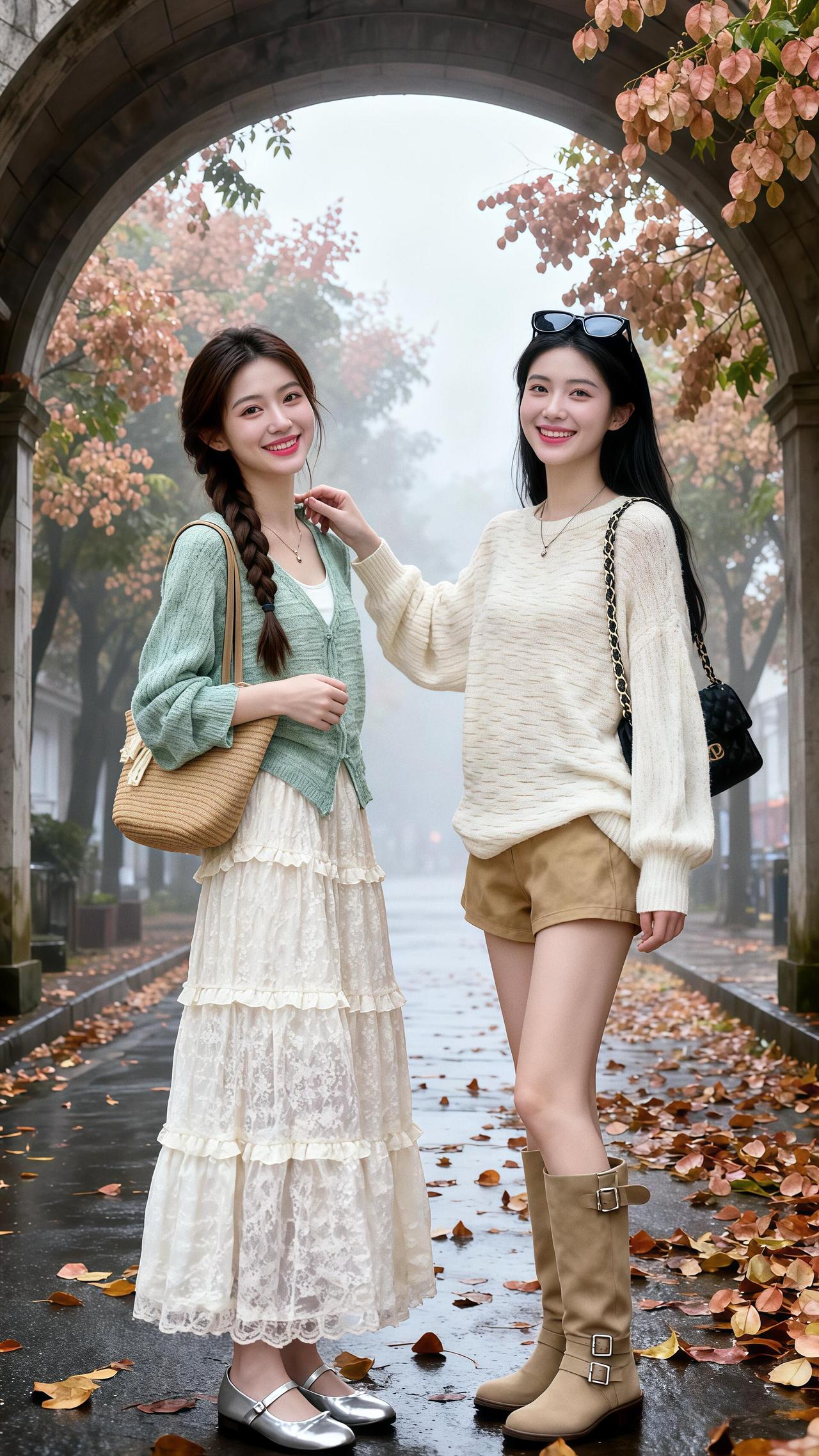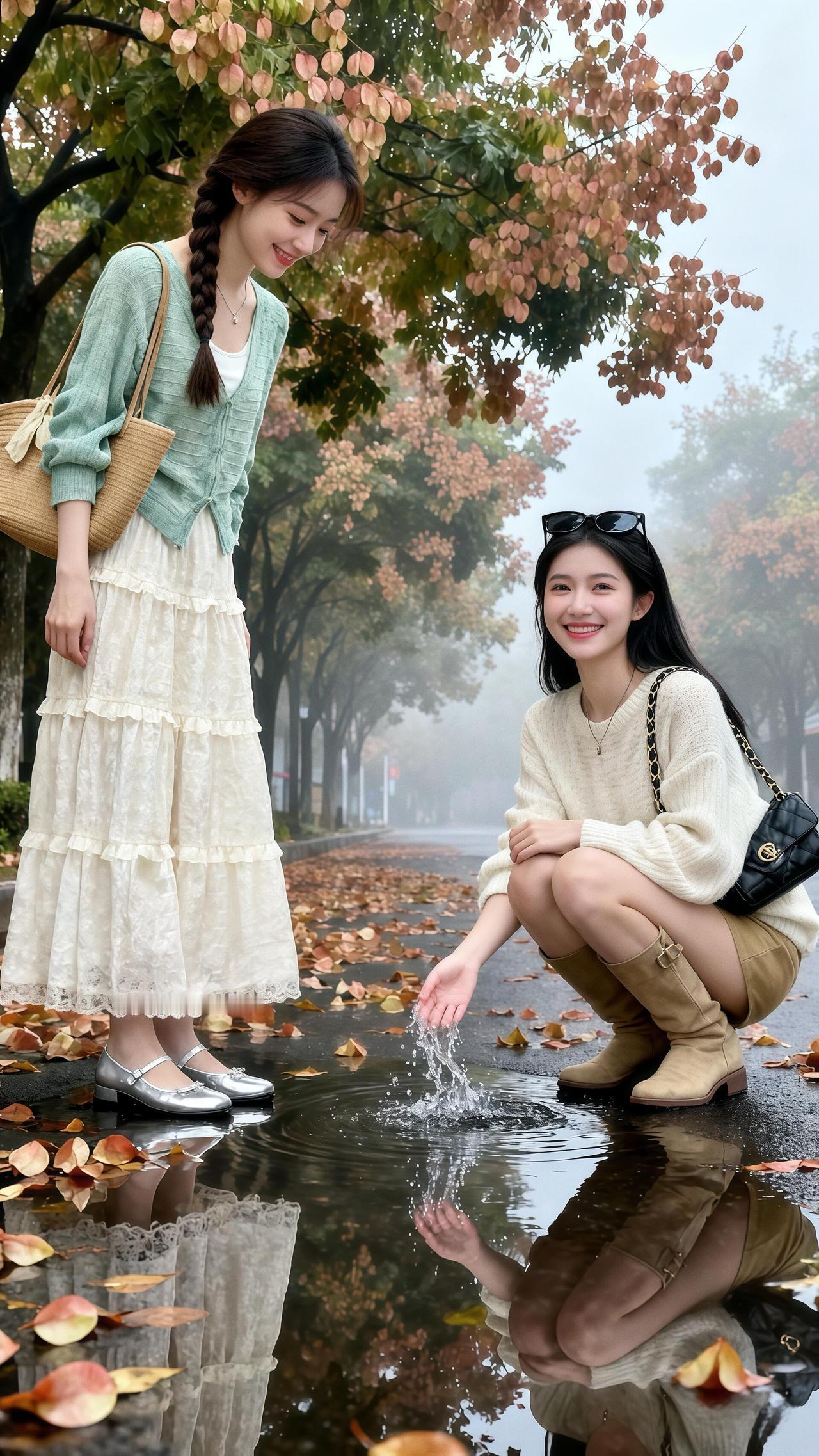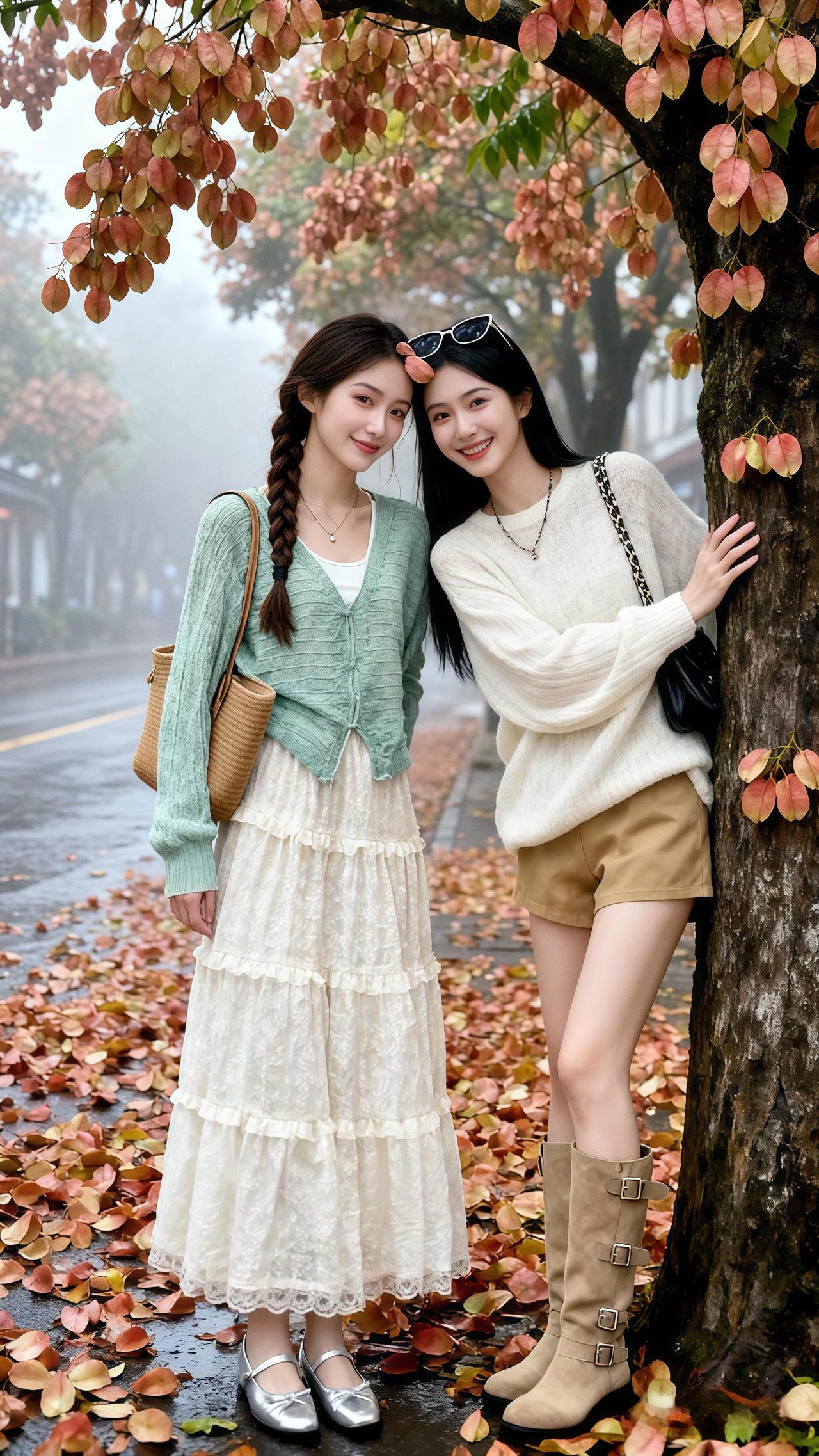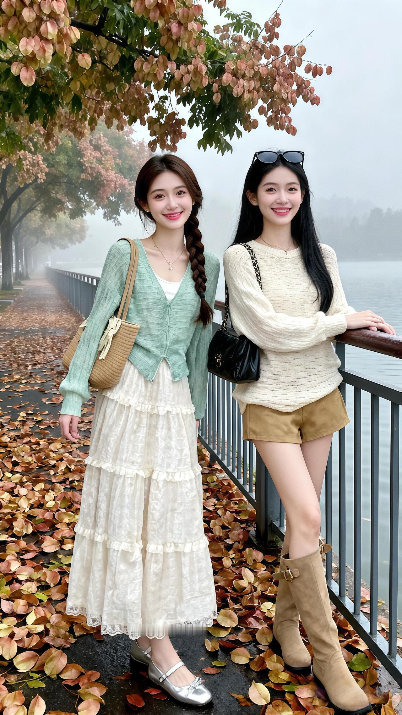 秋日穿搭指南黑色高领毛衣+灰色背心+白色长裙简约而不失优雅