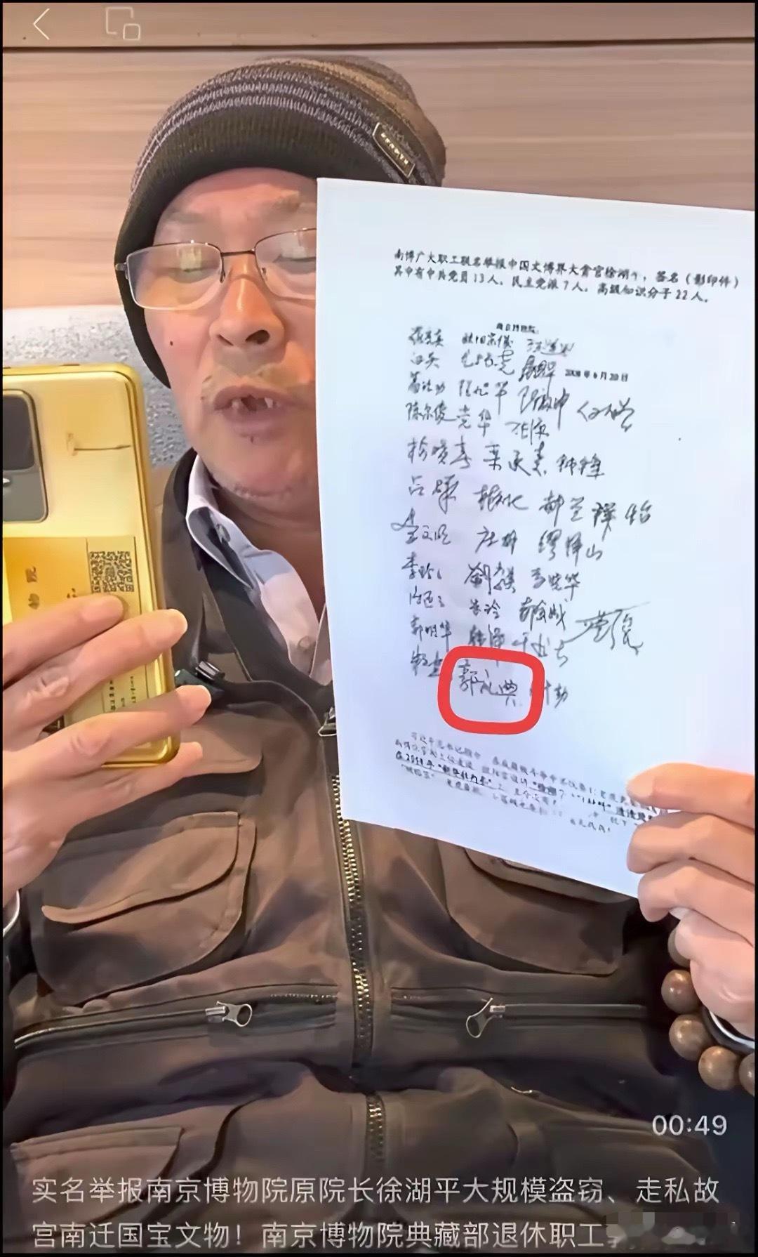 原来徐建平的儿子在上海开拍卖行,这父子可真是“大生意人”,从盗到卖,完美闭环,把博物院当自己家仓库,把国宝当自家摇钱树。2025年12月21日,曾在南京博物院典藏部工作的郭礼典,手持工作证实名举报前院长徐湖平。他语出惊人,说2008年就有42位同事联名举报徐湖平,并拿出当年42正义之士签名的复印件。他说的徐湖平“巧取”北京博物院南迁文物的手法,跟此次大家熟知的《江南春》如出一辙。徐湖平把自己相中的文物,授意专家鉴定为赝品,然后再利用自己的权利,走正常程序将“赝品”“调剂”到江苏省文物店出售。而这里也是徐湖平只手遮天的大本营,他选择合适的时机,让合适的人选来超低价买走文物,然后再交到自己手上。而且,郭礼典还曝出一个惊天猛料,徐湖平的儿子在上海开拍卖行。徐湖平的儿子徐湘江,虽然不在博物院工作,但是也得到了真传,父子俩共同编撰出版了《中国民间收藏陶瓷大系·江苏、安徽卷》。而他在上海经营着江苏爱涛拍卖有限公司。郭礼典说,徐湖平将到手的文物通过儿子的拍卖行出货变现。如果举报属实,那不得不说这父子俩是文物领域的“大生意人”,用手中权利,以暗度陈仓的手段,构建起一条从盗取到贩卖的成熟产业链,并且他们盗售的每一件文物,都是千挑万选,价值连城的国宝。