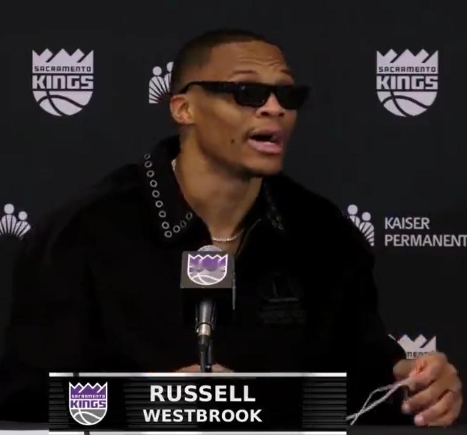 记者:“你是最会抢篮板的后卫之一,甚至没有之一。” 威少:“我没听清你刚才说的。” 记者:“我说你就是最顶尖的。” 威少:“这才对嘛,别吞吞吐吐的。” 威少的性格是他最大的招牌之一,也是很多球迷喜欢他的原因。这和他在场上打比赛是一样的,永远情绪饱满,从开场冲到最后一秒。 投篮的手感会有起伏,也经常遭遇一连串的打铁,但在防守端,尤其是一对一的单防,威少就没虚过,且对于篮板球的冲抢和保护,威少也是NBA历史上最好的后卫之一。 充满自信,就是职业球员的天性,威少就是如此,能打多久不知道,但至少目前,绝对能打!