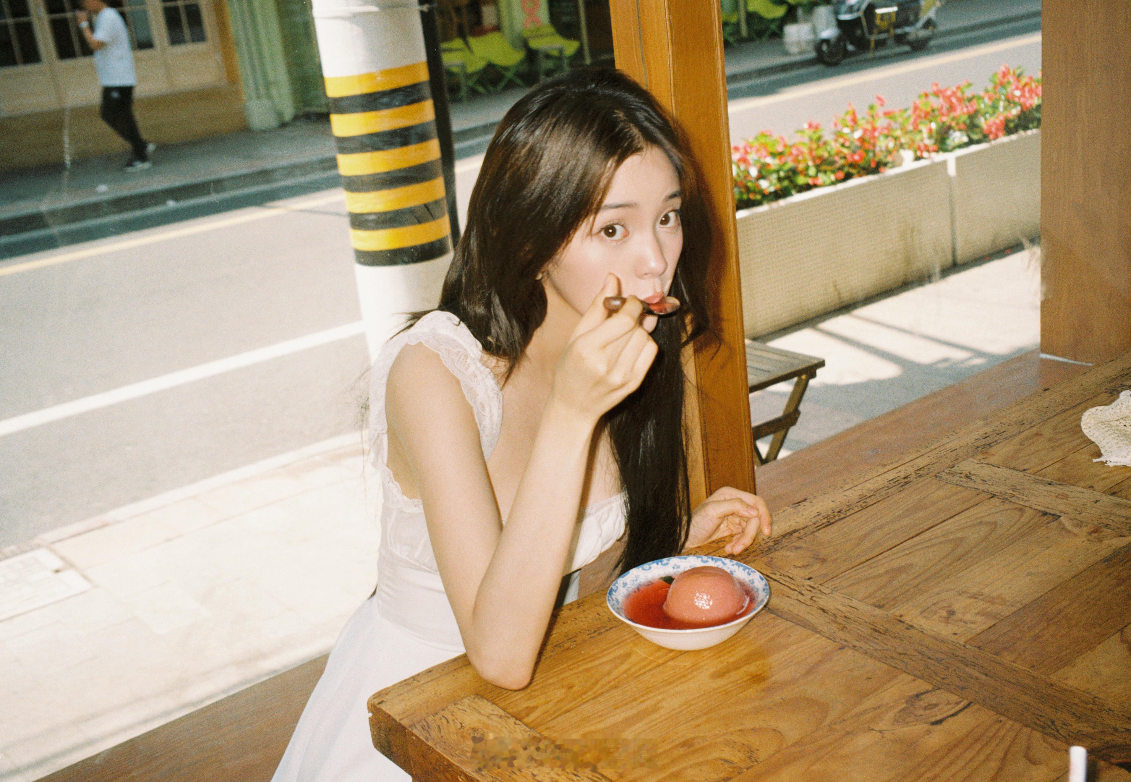 陈妍希在餐厅吃饭,素颜都好漂亮。