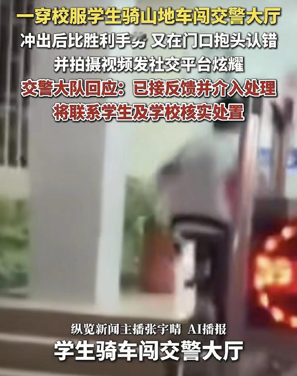 福建厦门一穿着校服的学生夜闯交警办事大厅,并拍视频炫耀,工作人员称已经联系学生,已和学校进行核实处理。至于交警大厅为何夜间开放,是因为有记住设备开放,方便群众办理相关业务。学生的行为,不管是家长还是学校,一定要认真教育,学生也要自己反思。