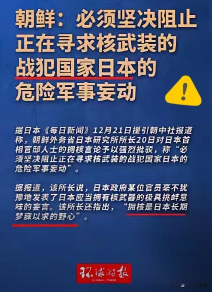 朝鲜这次直接把枪口顶在了日本脑门上!针对日本高官的“拥核”言论,平壤根本没走外交程序,直接甩出“战犯国家”和“核浩劫”两个死刑判决!这意思是明确的:别指望有了核武能搞平衡,只要你敢往弹头上拧一颗螺丝,朝鲜的导弹就会先一步把日本岛变成无人区! 很多人觉得这是朝日间的口舌之争,但这事核心不是吵架,是东北亚核平衡被撬动。 站在中国角度看,这背后的风险和机会,咱们得掰扯清楚。 说白了,这是右翼日本在赌国运,大国博弈提前摊牌。 2025年12月18日,日本高官率先妄言“拥核”。 这不是随口说说,是试探国际社会的底线。 12月21日朝鲜直接硬刚,朝中社痛斥其“战犯国家”。 公开数据显示,朝鲜“火星炮-18”导弹射程超1.2万公里,能覆盖日本全境。 这款固体导弹可载分导式多弹头,还能变轨突防。 日本反导系统想拦截,简直是高射炮打蚊子。 美国一边喊着“坚守核不扩散”,一边给日本递刀。 说白了,就是想借日本之手牵制中俄朝。 东北亚是我国周边安全的“前门”,更是亚欧贸易要道。 日本若真敢拥核,不仅会引爆地区核竞赛,还会让我国东海航线风险飙升。 中国坚持和平解决,但绝不放任底线被突破。 我们既会推动外交斡旋,也会筑牢自身安全屏障。 日本真敢跨过核红线吗?美国会真的兜底吗? 这对咱们的贸易安全、能源通道影响多大?评论区聊聊。