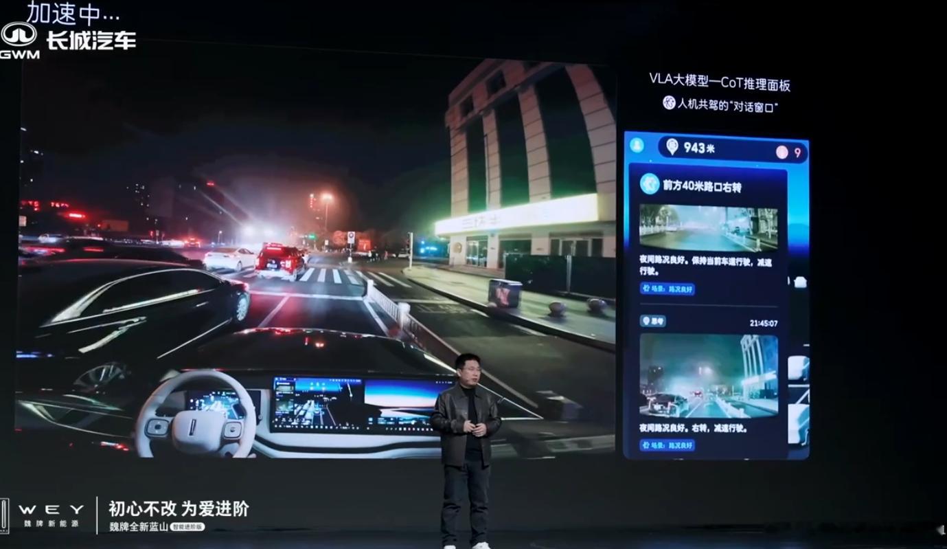 魏牌全新蓝山搭载的VLA大模型,可以做到听得懂,通过和小魏同学语音交流,让其实现语音控车,非常方便,并且新的CoT推理面板,也是人机共驾的"对话窗口,信息显示更加直观蓝山VLA大模型上车首秀