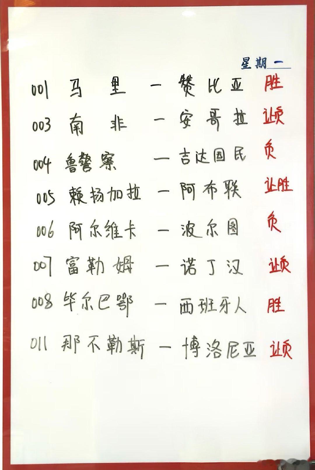 12月22日001 马里 VS 赞比亚002 沙迦 VS 利雅得新月 003 南非 VS 安哥拉004 巴格达警察 VS 吉达国民005 加拉法 VS 阿尔瓦赫达006 阿尔韦卡 VS 波尔图