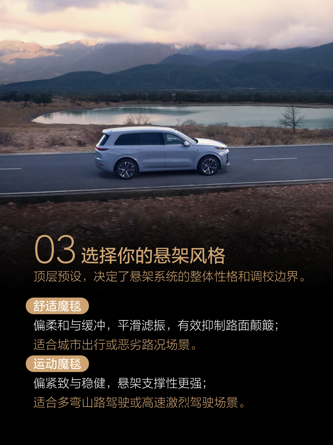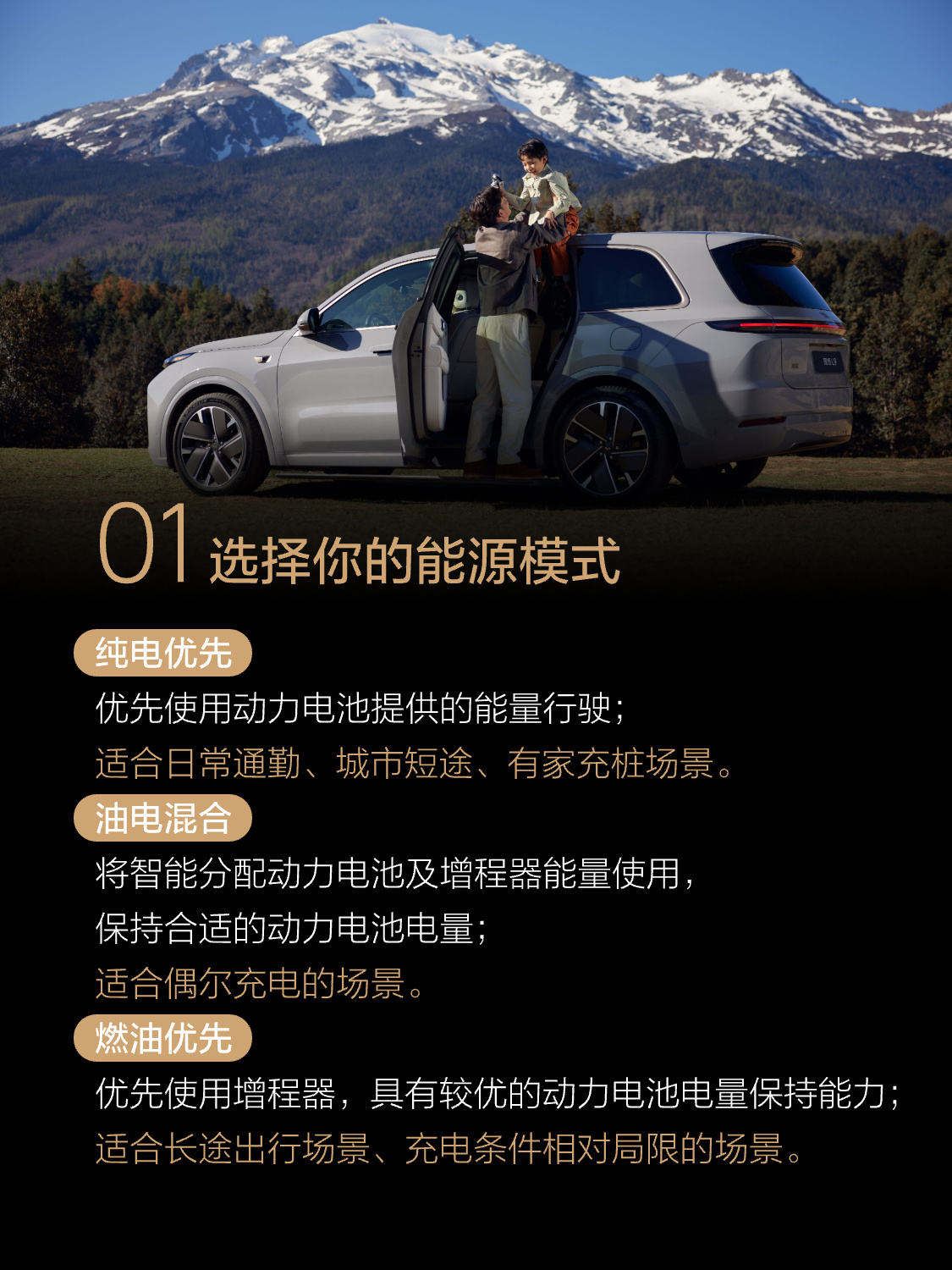 刚看了理想驾驶模式的调校攻略,说实话,还是蛮详细的。拿我的理想L9来举例像我一般主要在城市通勤,基本上就是选择纯电优先。远途出行就调到油电混合或者燃油优先。动力模式的话,这个看是我自己开,还是带上家人,如果我自己开,会调到运动模式,加速踏板响应会更快。带上家人我会选择舒适模式。悬架风格我会选择舒适魔毯,因为平时都是在城市道路上,偶尔遇到烂路,就会调到运动魔毯。然后就是转向模式,我一般也是会调到舒适模式。其实我周围选择理想汽车的小伙伴,大部分都是在城市道路上开,不过它的性能以及稳健的底盘,在复杂路况的表现也是相当不错的。理想汽车