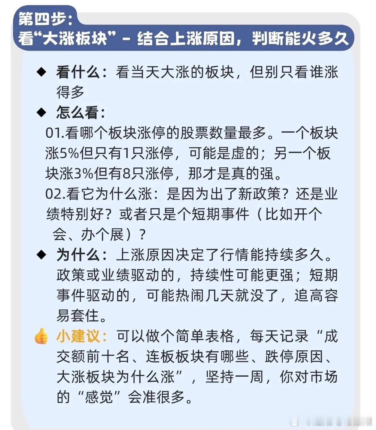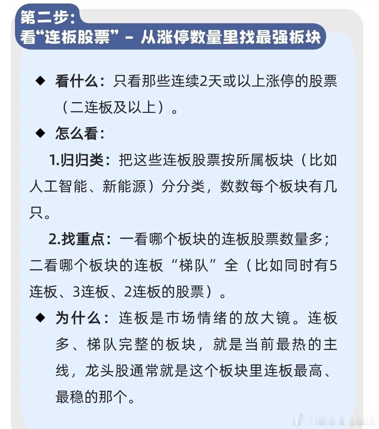 选龙头股及避风险可遵循四步:第一步看大成交额股票,盯成交额前20或超15亿且连续高的,因大资金共识易出热点龙头;第二步看连板股票,统计连板股所属板块数量与梯队,连板多且梯队全的板块是主线,龙头多为其中连板最高最稳者;第三步看跌停股票,关注是否集中板块、跌停原因及风险蔓延性,跌停增多表明情绪转差,追高风险大;第四步看大涨板块,比涨停数量、析上涨动因(政策/业绩驱动更持久),建议记录成交额前十、连板板块等信息坚持一周,增强市场感知。