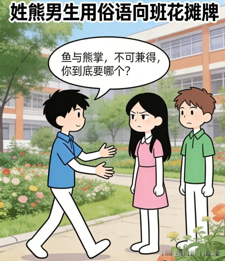 趣味漫画:姓熊和姓余的同时向班花表白,校花表示余和熊掌不可兼得,幸好我不吃荤
