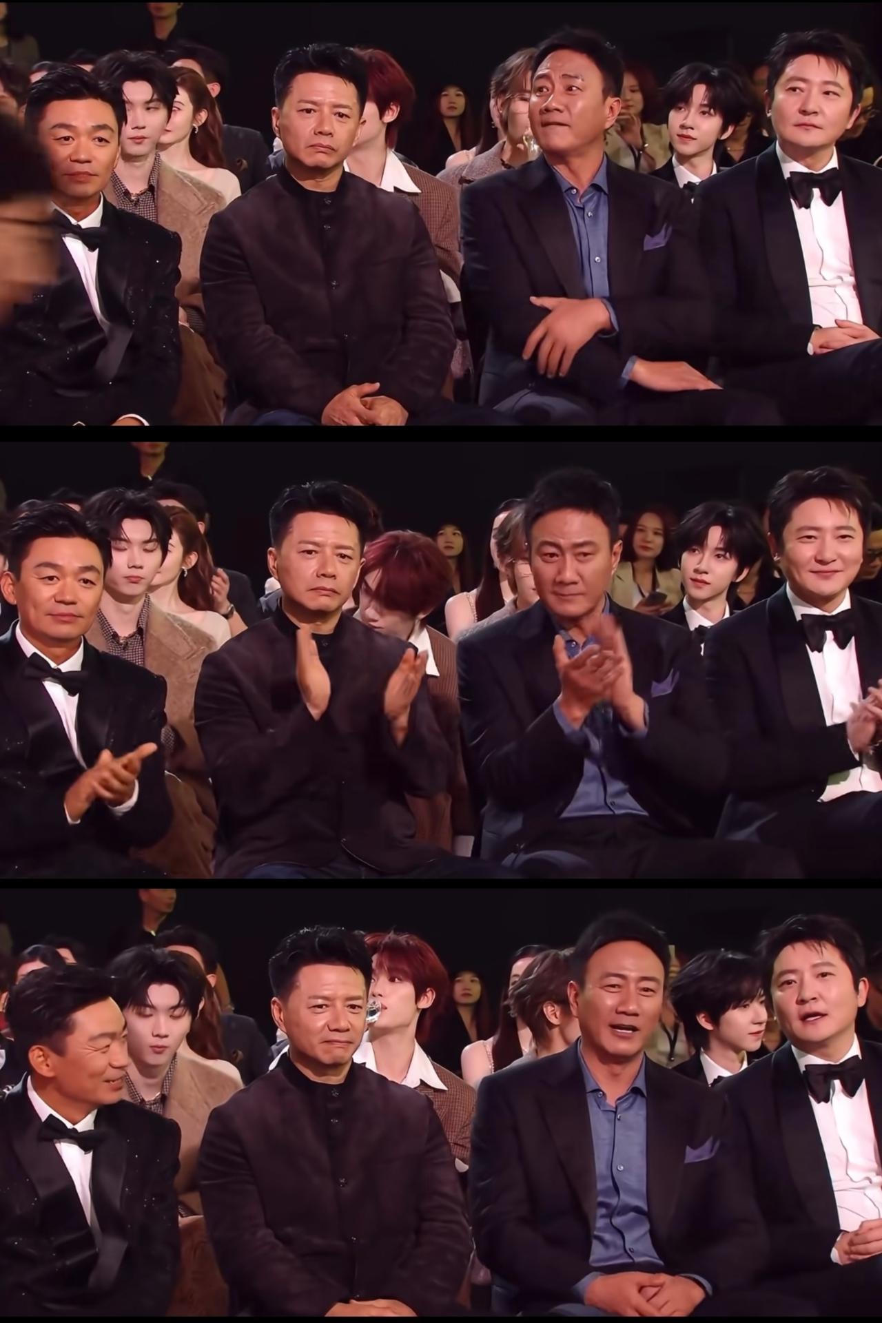 别说女人怕比较了,男人也不例外。 你看这四位大叔坐在一起,特别有看头! 看了这张图,你就知道为什么郭京飞能演《老舅》了! 不是因为他帅,而是因为他白呀! 只有白了才适合搞技术的工程师吧? 也只有白了才能去夜总会唱歌,迷倒老板娘吧? 也只有他白了,才像个哈工大的读书人吧? 平时看着郭京飞觉得他糟糟的,现在一对比,他简直是奶油小生呀! 但是郭京飞再白,也白不过他们后排坐的新星! 后面几位小年轻,无一例外白得发光,白得像刷墙! 不知后面几位,将来有几个能演到叔叔辈呢?