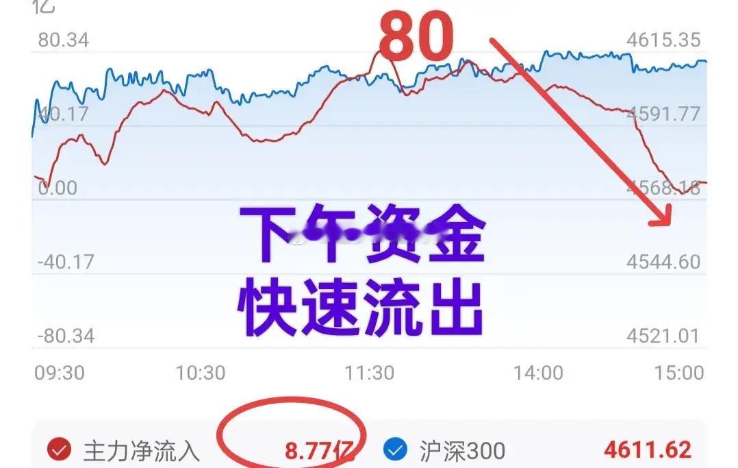 A股:大盘四连阳,一些投资者心里活络起来了。今天一个很扎心的事实,主力资金下午是净流出的!(图)盘后数据显示,今天全天主力资金净流入8.77亿。沪深两市今天是放了量的,比前一个交易日放大约为1000亿。这些放大的成交金额里面,有多少是进场追涨散户的贡献呢?从今天的资金图中,还可以发现一个细节。今天主力资金净流入一度超过了80亿,但到收盘的时候,这个数据变成了8.77亿。而且从下午2点开始,主力资金净流入金额是一个快速下降的过程。从大盘的表现也能看出一点端倪。下午两点左右开始,指数到达了全天最高点3920. 01点。PS:金姐今天盘前预测的阻力区域是3920~3930点(图),刚好到了下轨,这也太要巧了吧之后无力继续上涨,在14.30左右出现一次小级别跳水,最低跌到3914.5点。最终收盘3917点。下午这些流出的主力资金是调仓换股呢,还是趁着好日子跑路了呢?个人观点,仅供交流,不构成投资建议!理财有风险,投资需谨慎!