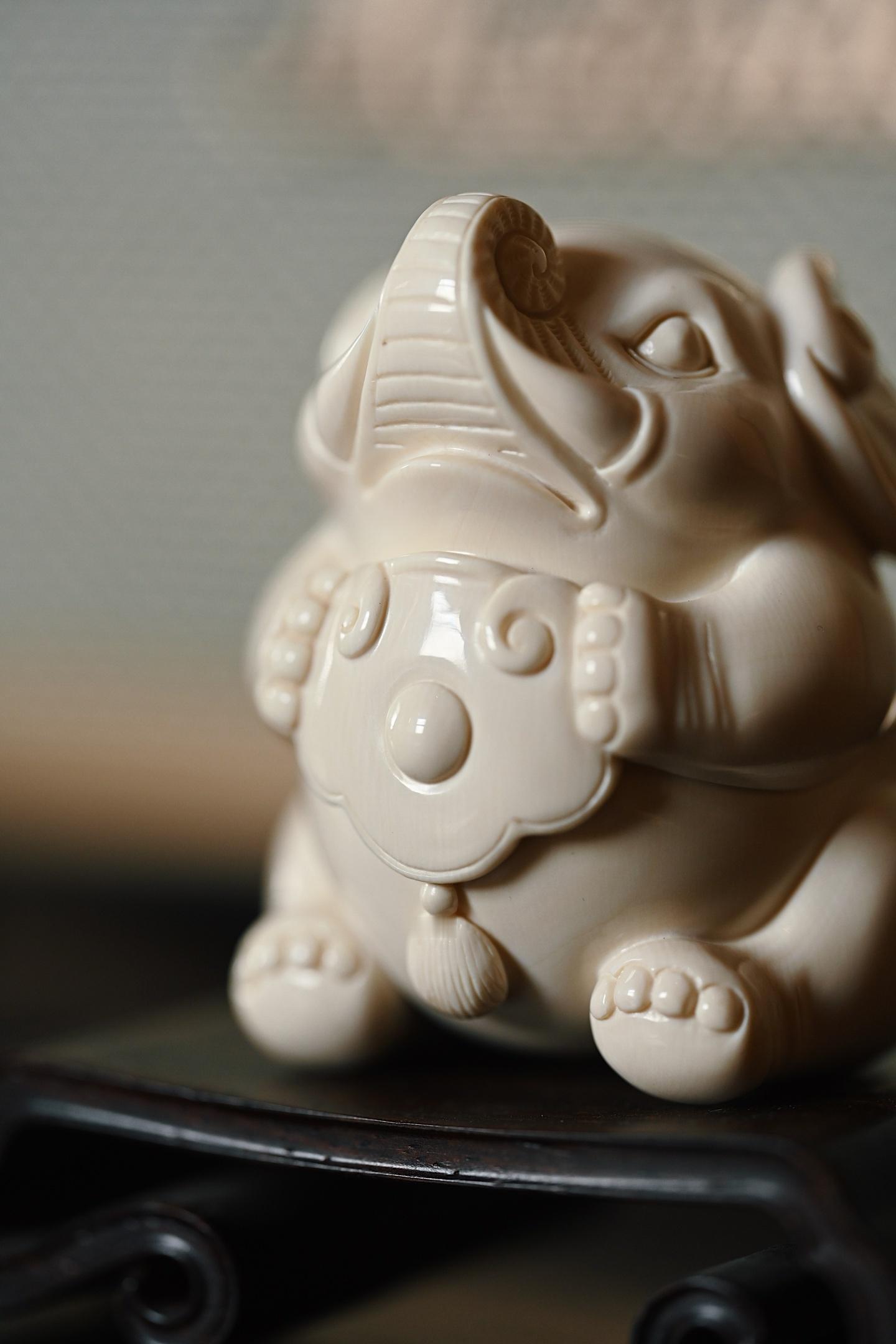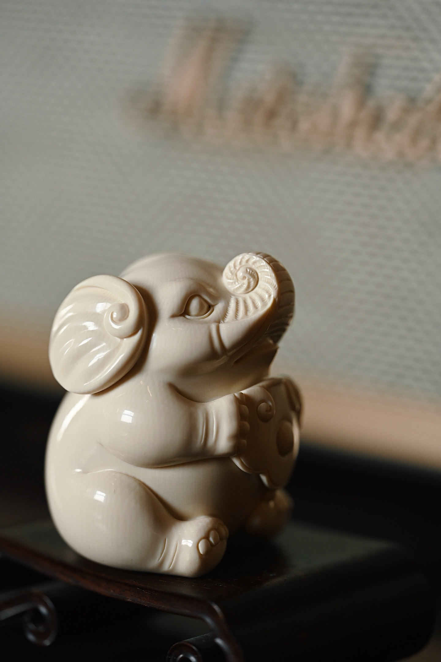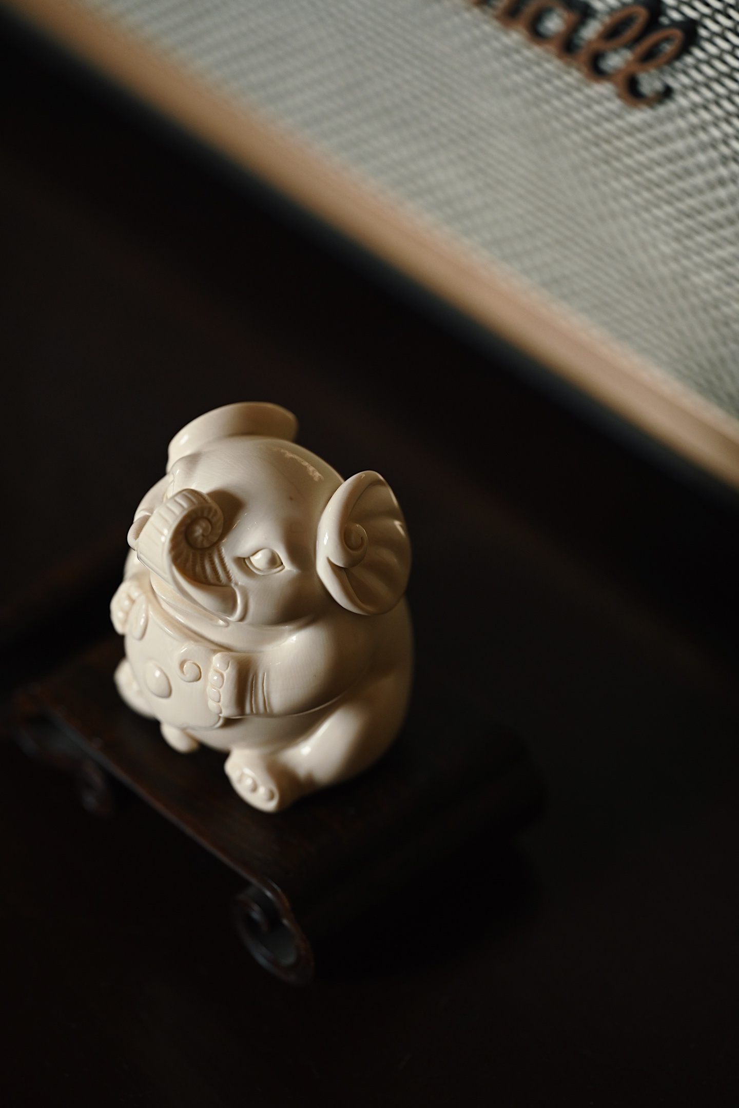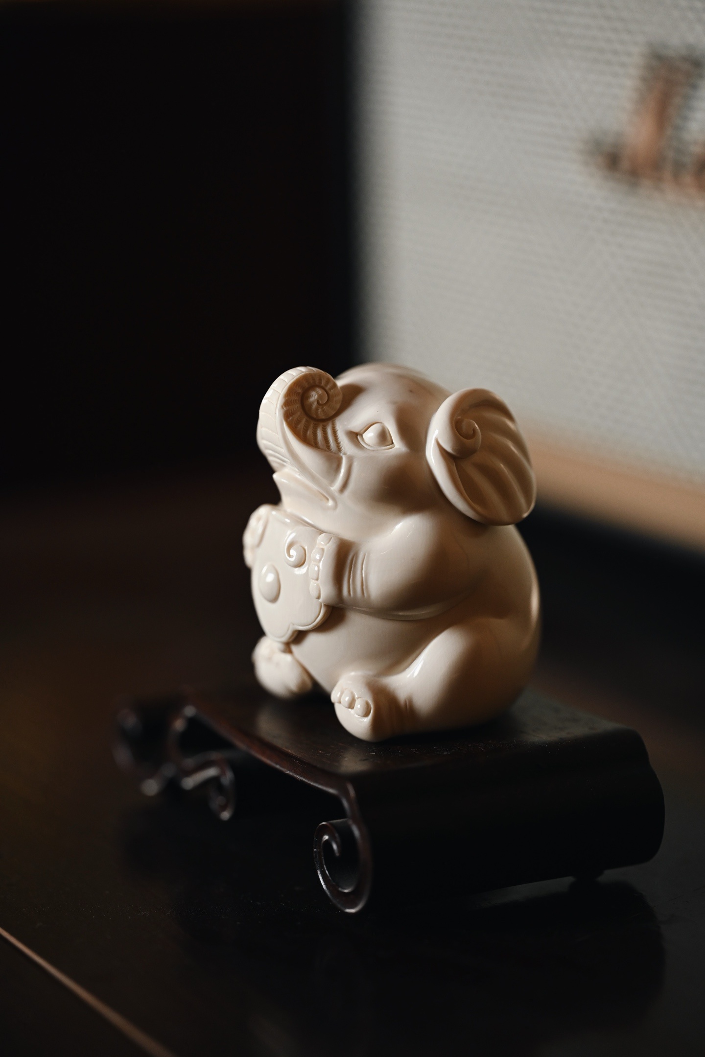 猛犸 | 吉象如意料质细腻,雕工浅深有致,憨态可掬,长鼻上卷,双耳如扇,四肢若柱,手捧如意,整体圆润饱满,陈设、把玩皆具趣意。5.3*5.3*6.3cm 147g
