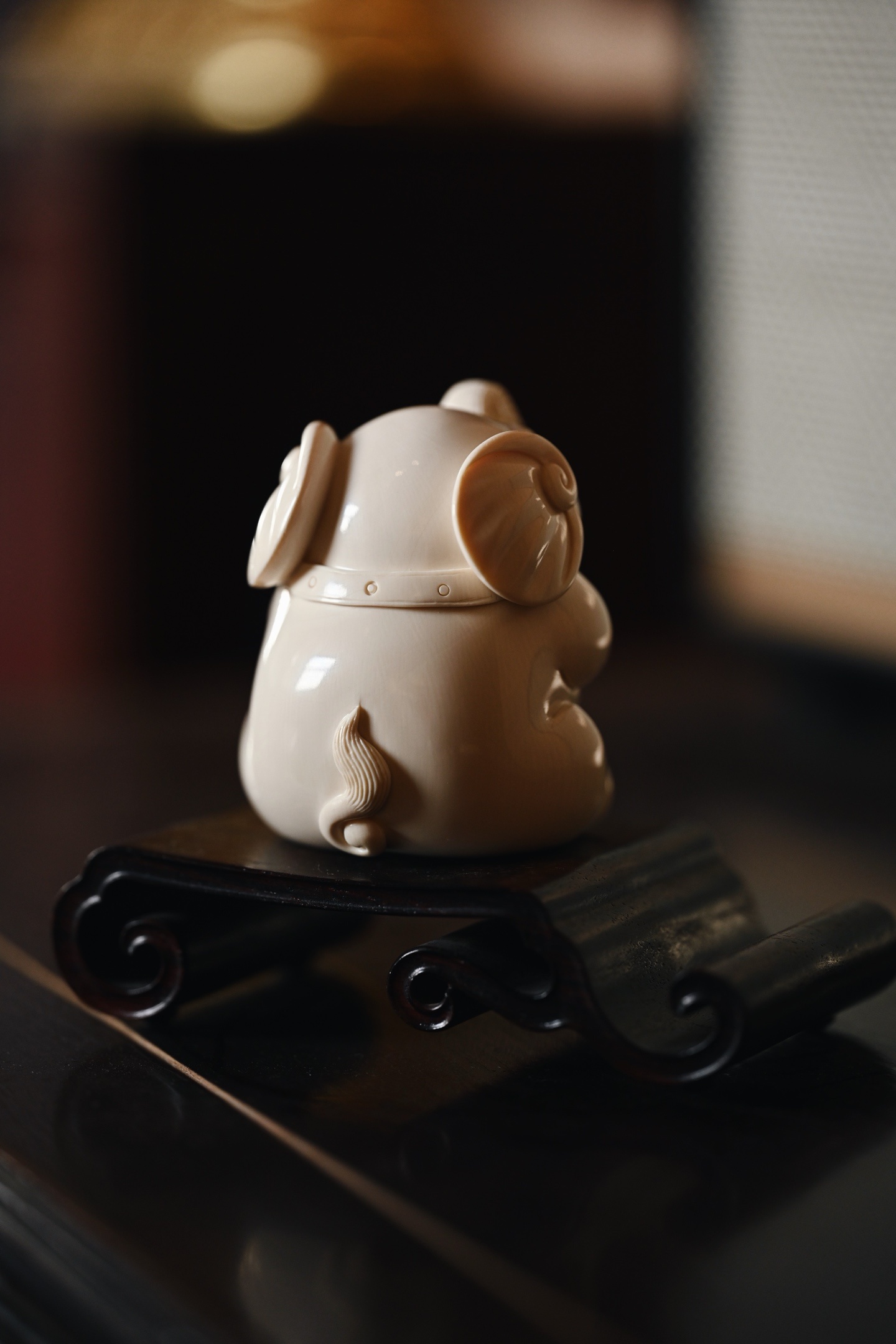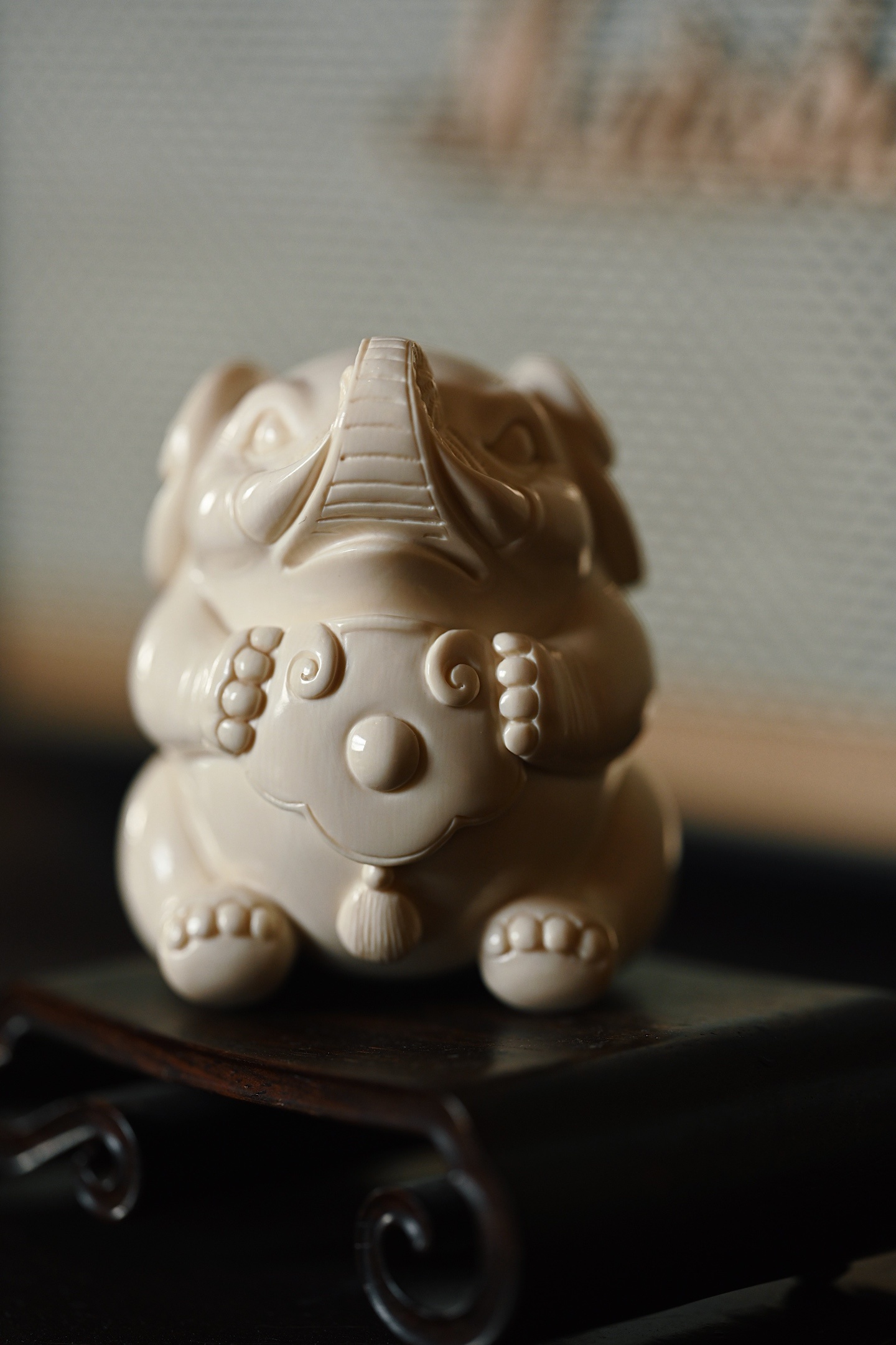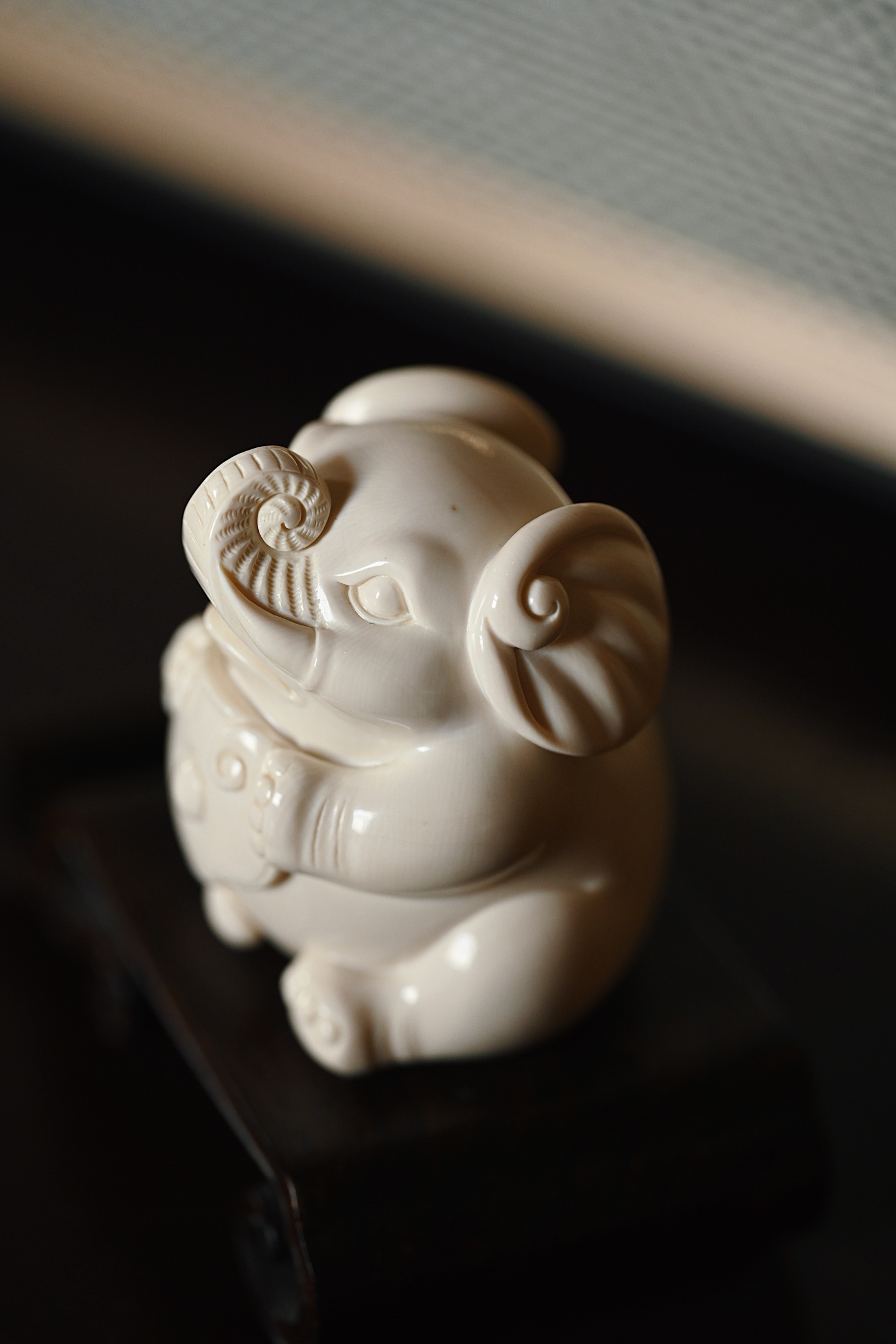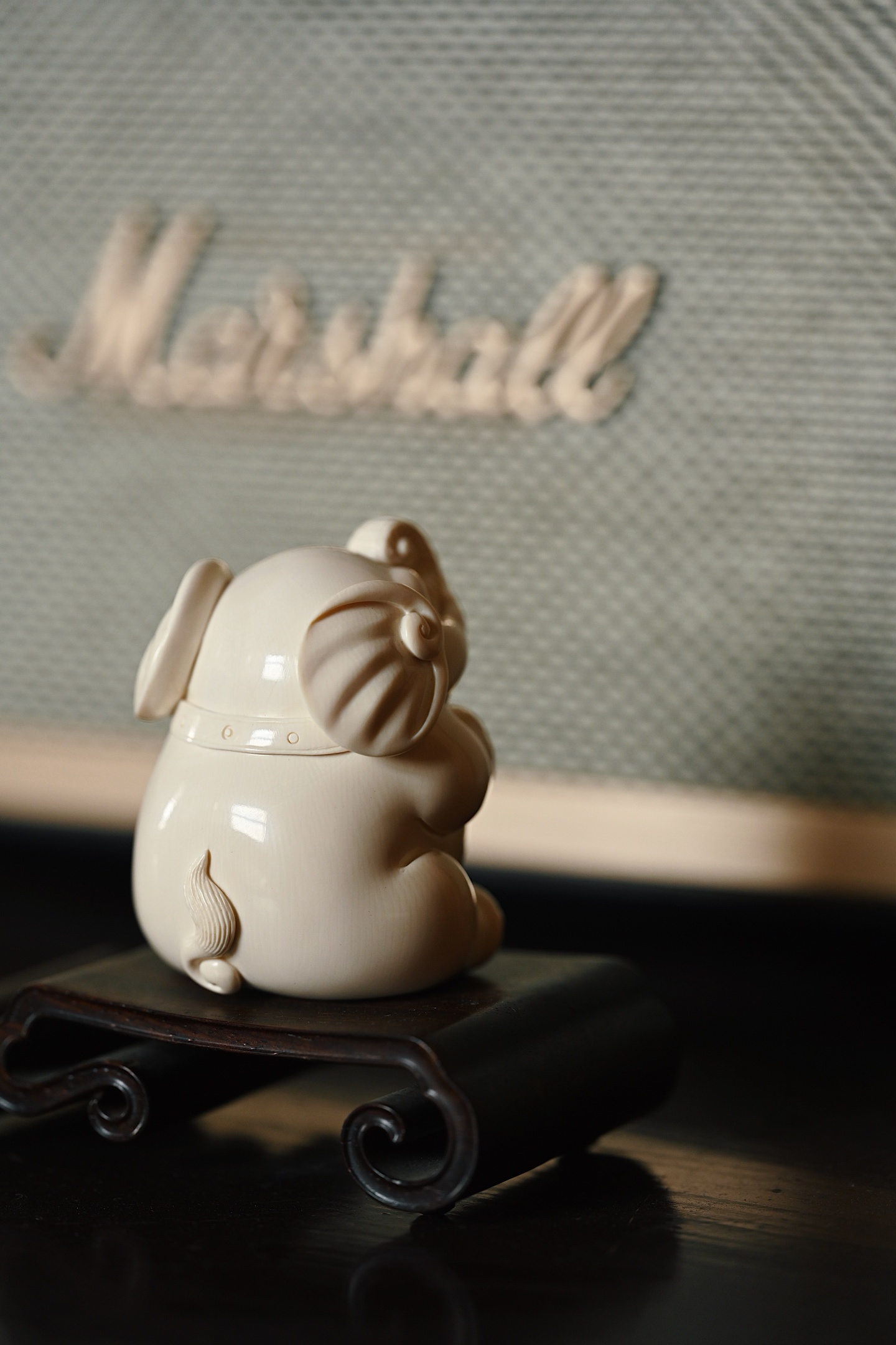 猛犸 | 吉象如意料质细腻,雕工浅深有致,憨态可掬,长鼻上卷,双耳如扇,四肢若柱,手捧如意,整体圆润饱满,陈设、把玩皆具趣意。5.3*5.3*6.3cm 147g