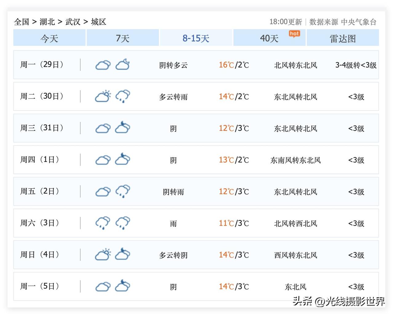一个好消息,一个坏消息!湖北省武汉市,12月24日,武汉要出太阳啦!武汉的凄风冷雨,即将结束!……平安夜和圣诞节,武汉天气很不错,多云晴好……但是,问题是,超级计算机认为,元旦节,武汉阴雨连绵……12月31日到1月5日,武汉阴雨天是主旋律……中长期天气预报大趋势……冬季常常很难出错吧?! 1月2日和3日,武汉可能都会下雨…… 好吧,武汉的秋天,应该已经彻底划上句号了吧?!
