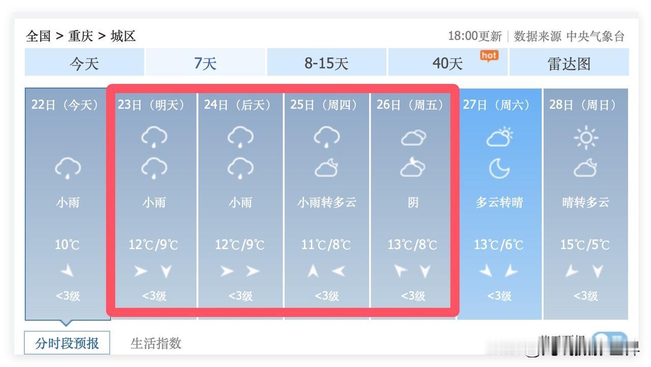哎,我要疯了!我好想立刻马上看到太阳公公啊!12月23日到26日,重庆依旧阴雨连绵,雨雾茫茫……雾都重庆……最近重庆的太阳好金贵啊!虽然天气预报显示,12月27日到29日,重庆多云,可能会有太阳……但是,怎么讲呢?! 重庆主城区,最近的天气预报,只要是多云,基本都是阴天……如果是预报晴天,那也就是下午可能会一点点的昏昏太阳,没有吃饱饭的太阳,没有力气的太阳……天空阴晴不定……啊啊啊! 再然后,12月30日到1月5日,重庆依旧阴雨连绵…… 看来,最近,应该有很多重庆退休老人,已经去了云南海南吧?! 嗯,圣诞节,广东天气很不错,广州,深圳,香港,澳门……机票还便宜,火车票还好……哈哈哈!