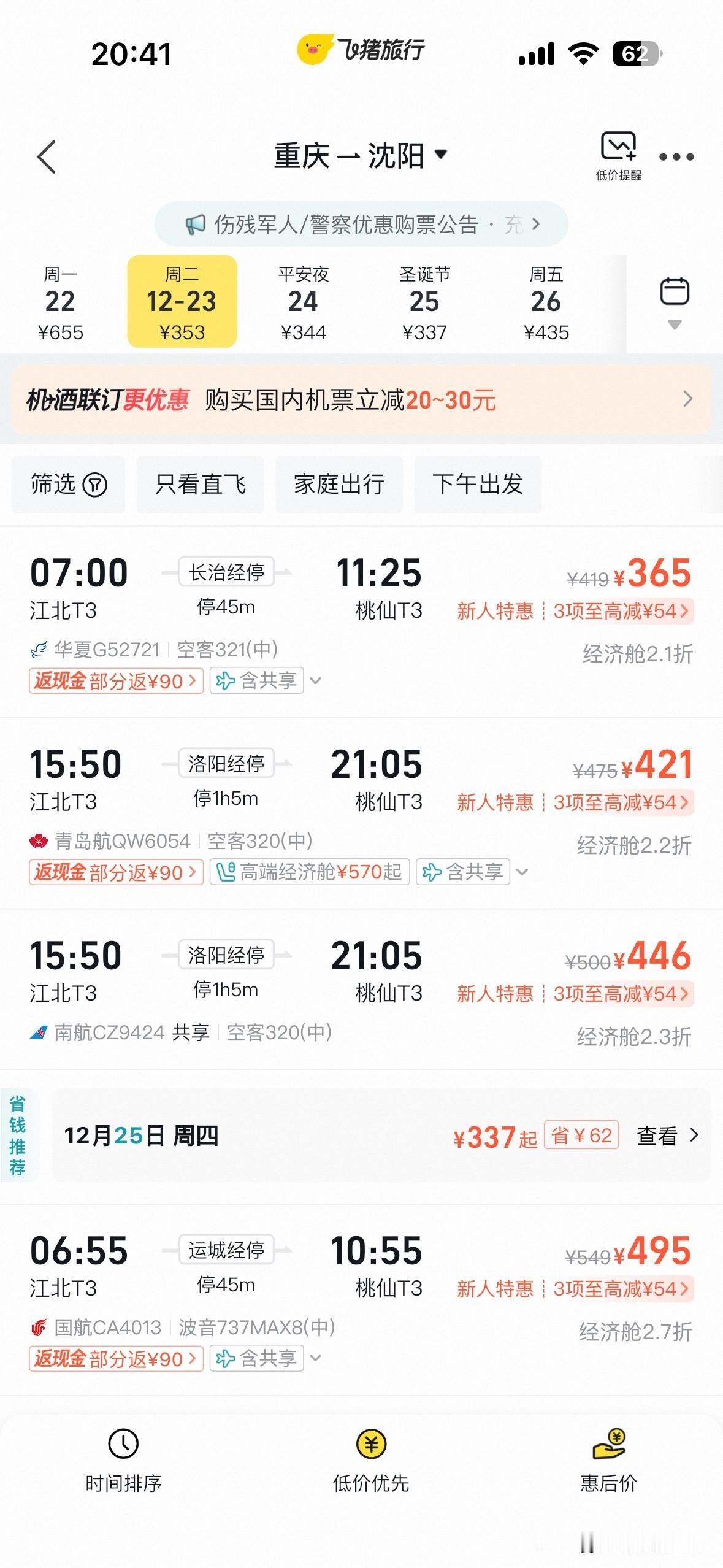 啊!12月22日晚上到23日晚上,东北大范围大雪纷飞!沈阳,大雪,暴雪……长春,哈尔滨……12月23日的雪景和冰雪世界,更加美丽啊! 12月24日,东北大范围放晴……想要看雪玩雪的重庆人,可以抓紧时间,最近,重庆飞沈阳的机票真的很便宜啊! 沈阳--长春--哈尔滨……一条龙玩下来啊! 不错不错!