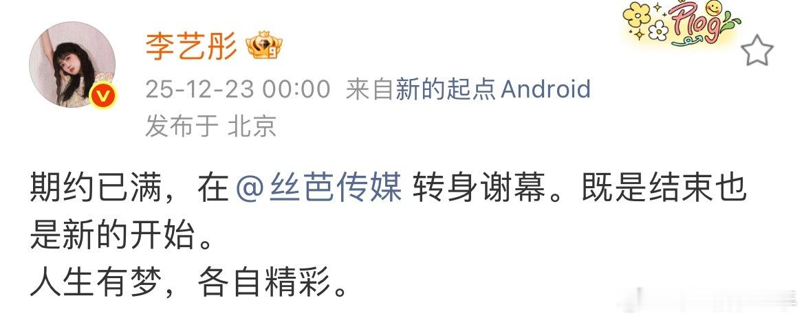 李艺彤丝芭到期不续李艺彤官宣离开丝芭 恭喜李艺彤!期待以后走花路!李艺彤丝芭期约已满